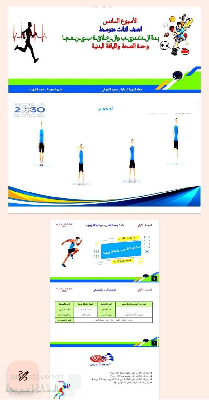 3. التربية البدنية, الفصل الثاني, 1447_1448 هجري, الأسبوع السادس إثراء شدة ومدة التدريب والعلاقة بينهما