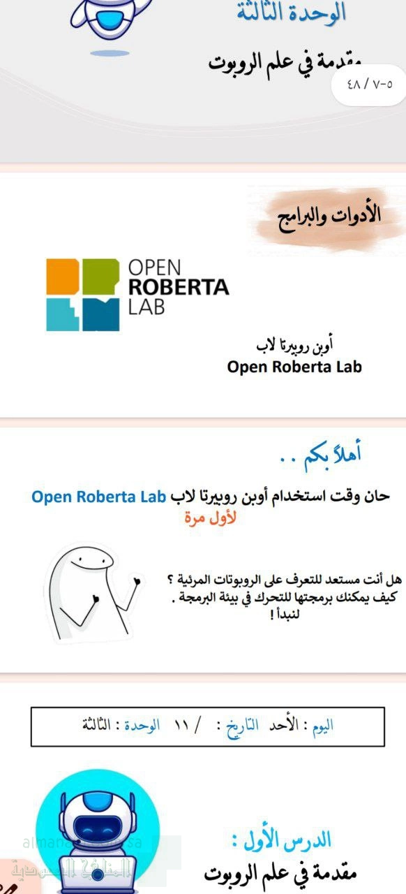 تم إيجاد الملف: عرض بوربوينت تقديمي للدرس الأول مقدمة في علم الروبوت الوحدة الثالثة مقدمة في علم الروبوت لمقرر التقنية الرقمية