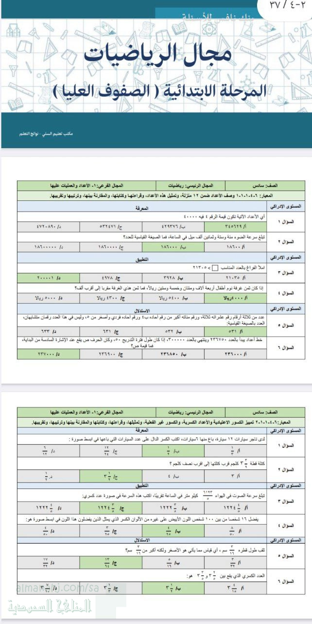 5. رياضيات, الفصل الثاني, 1447_1448 هجري, تجميع نماذج تدريب محاكي لاختبار نافس تغطية شاملة للمعايير غير محلول