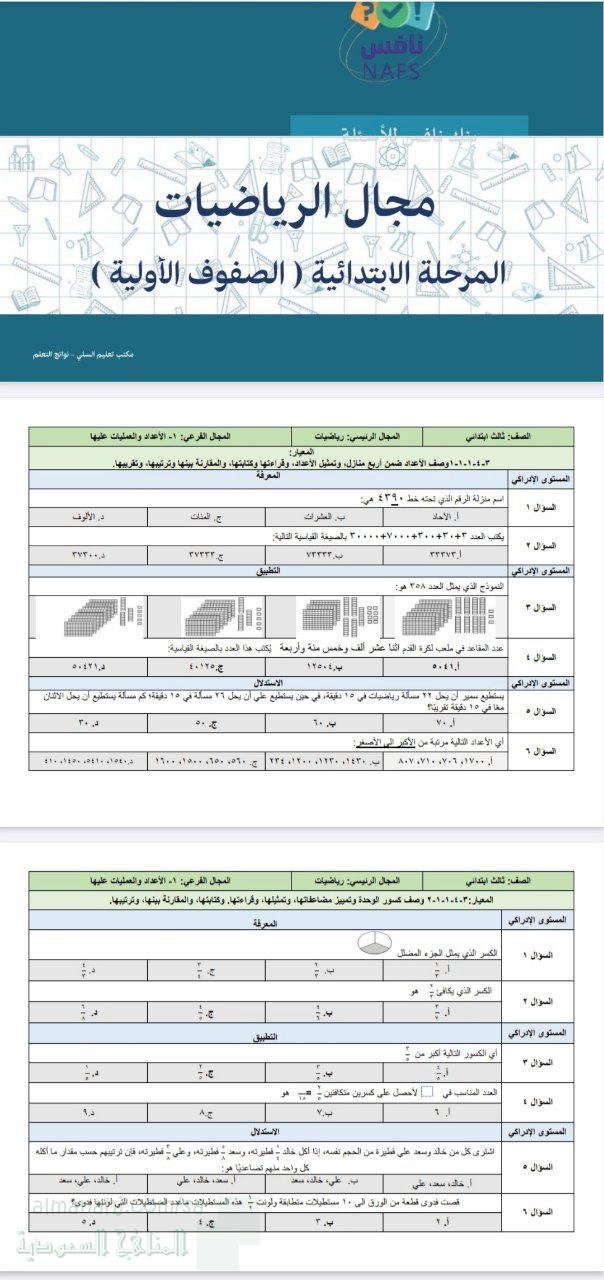 12. الصف السادس, رياضيات, تجميع نماذج تدريب محاكي لاختبار نافس تغطية شاملة للمعايير محلولة