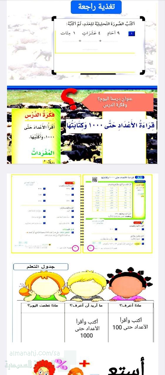 3. رياضيات, الفصل الثاني, 1447_1448 هجري, قراءة وكتابة الأعداد حتى 1000