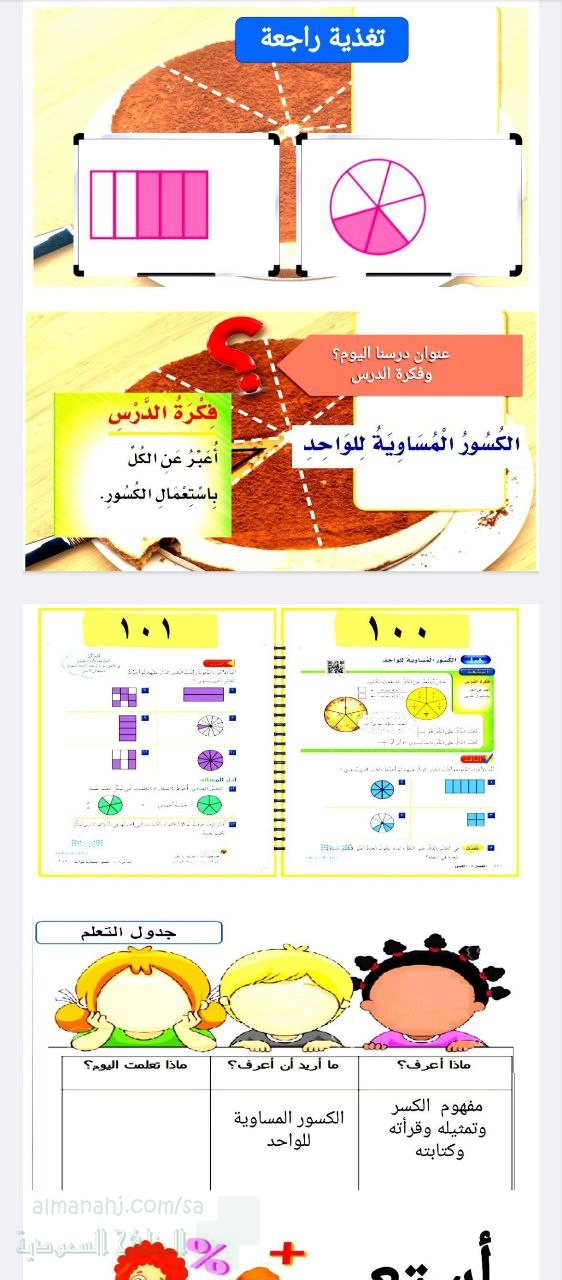 9. الصف الثاني, رياضيات, شرح درس الكسور المساوية للواحد