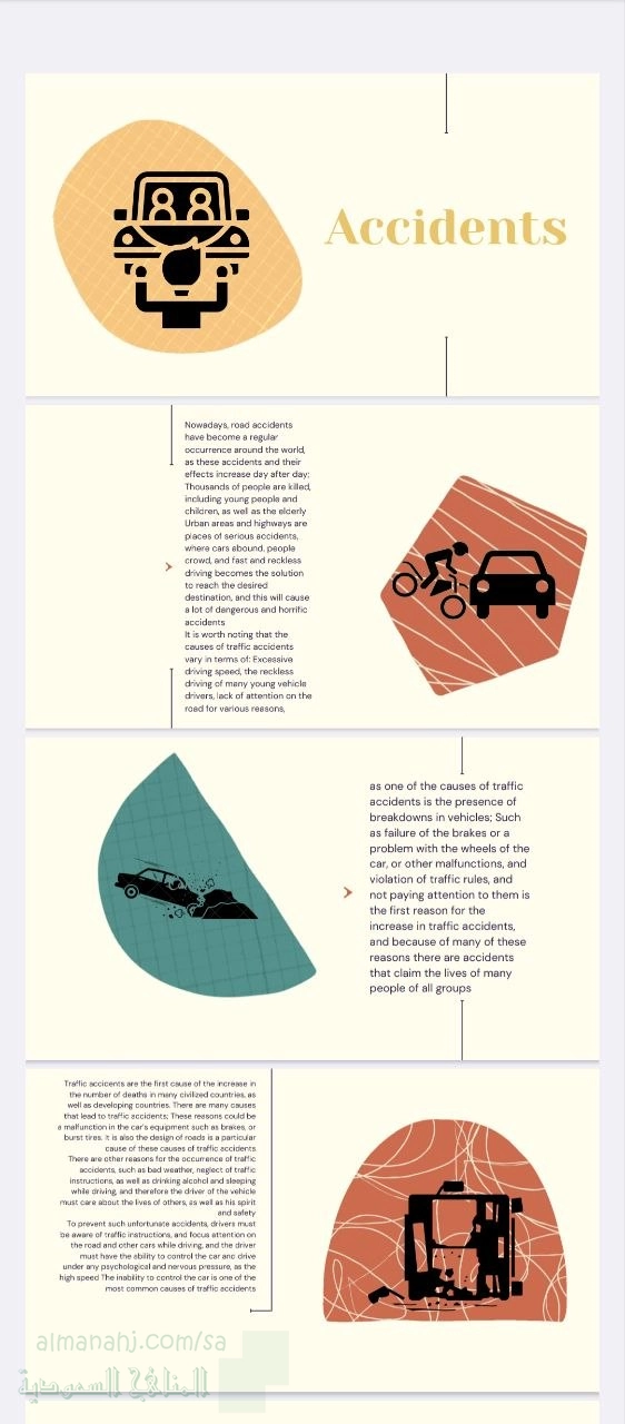 8. الصف الأول الثانوي, لغة انجليزية, عرض تقديمي حول حوادث المرور وأسبابها وحلولها