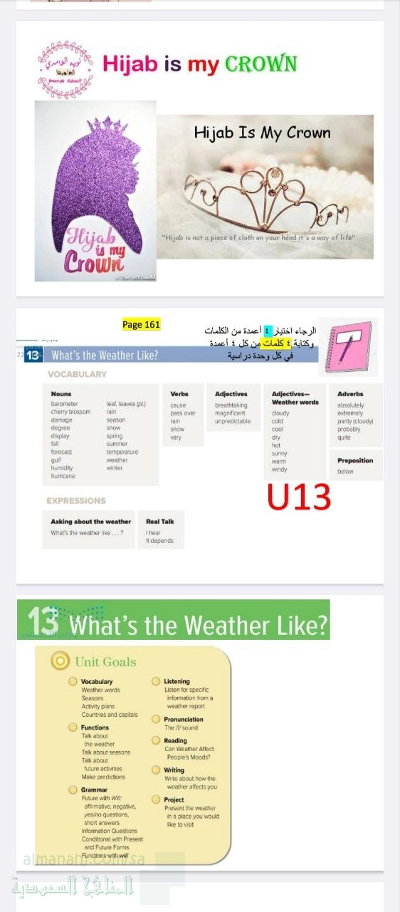 13. الصف الثاني المتوسط, لغة انجليزية, الدرس الأول الوحدة 13 عرض تقديمي الطقس والفصول
