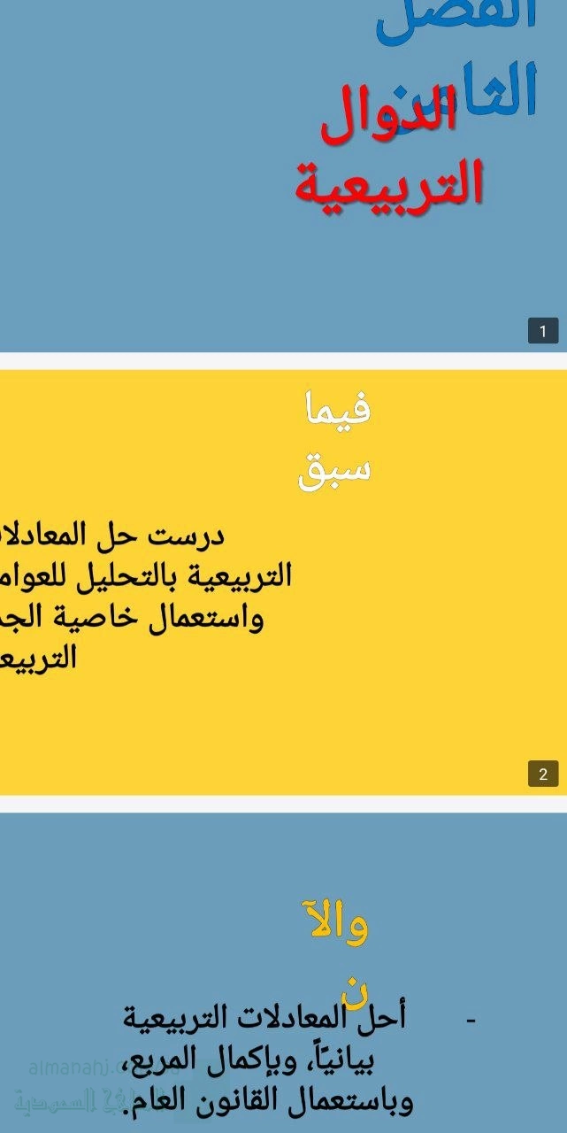 13. الصف الثالث المتوسط, رياضيات, الفصل الثامن الدرس الثاني حل المعادلات التربيعية بيانيا