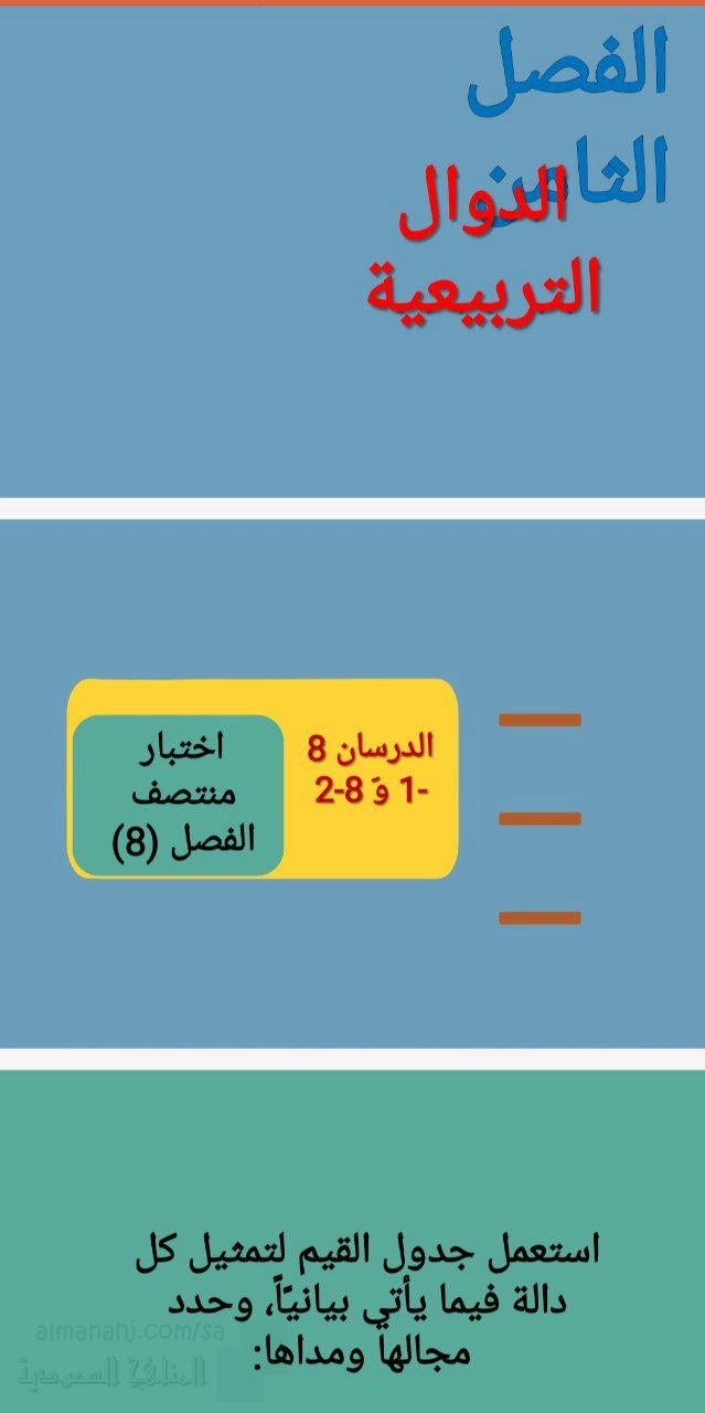 1. الصف الثالث المتوسط, رياضيات, الاختبار التراكمي للفصل الثامن الدوال التربيعية
