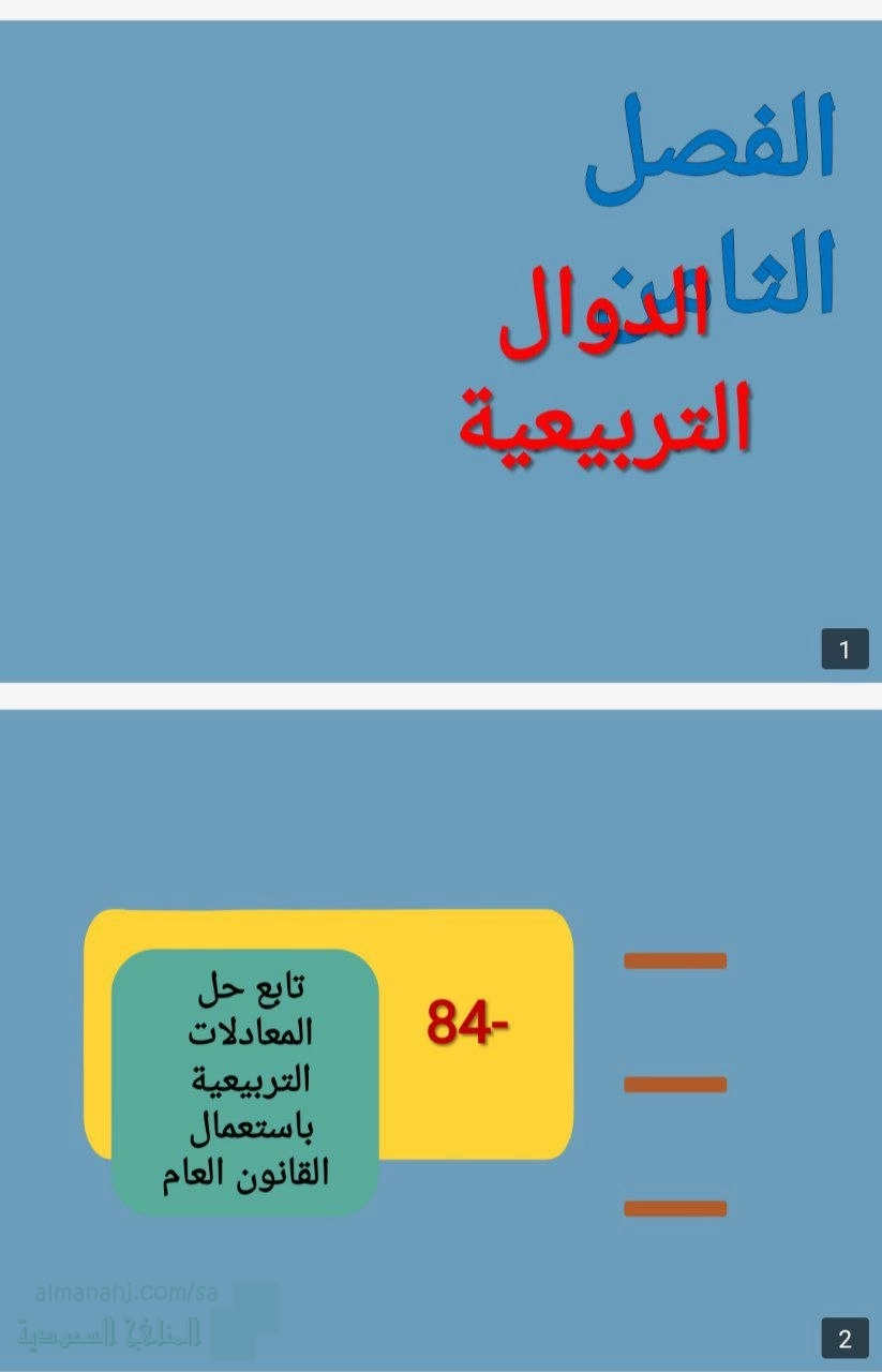 2. الصف الثالث المتوسط, رياضيات, بوربوينت الفصل الثامن تابع الدرس الرابع تمارين متقدمة على القانون العام والمميز لحل المعادلات التربيعية