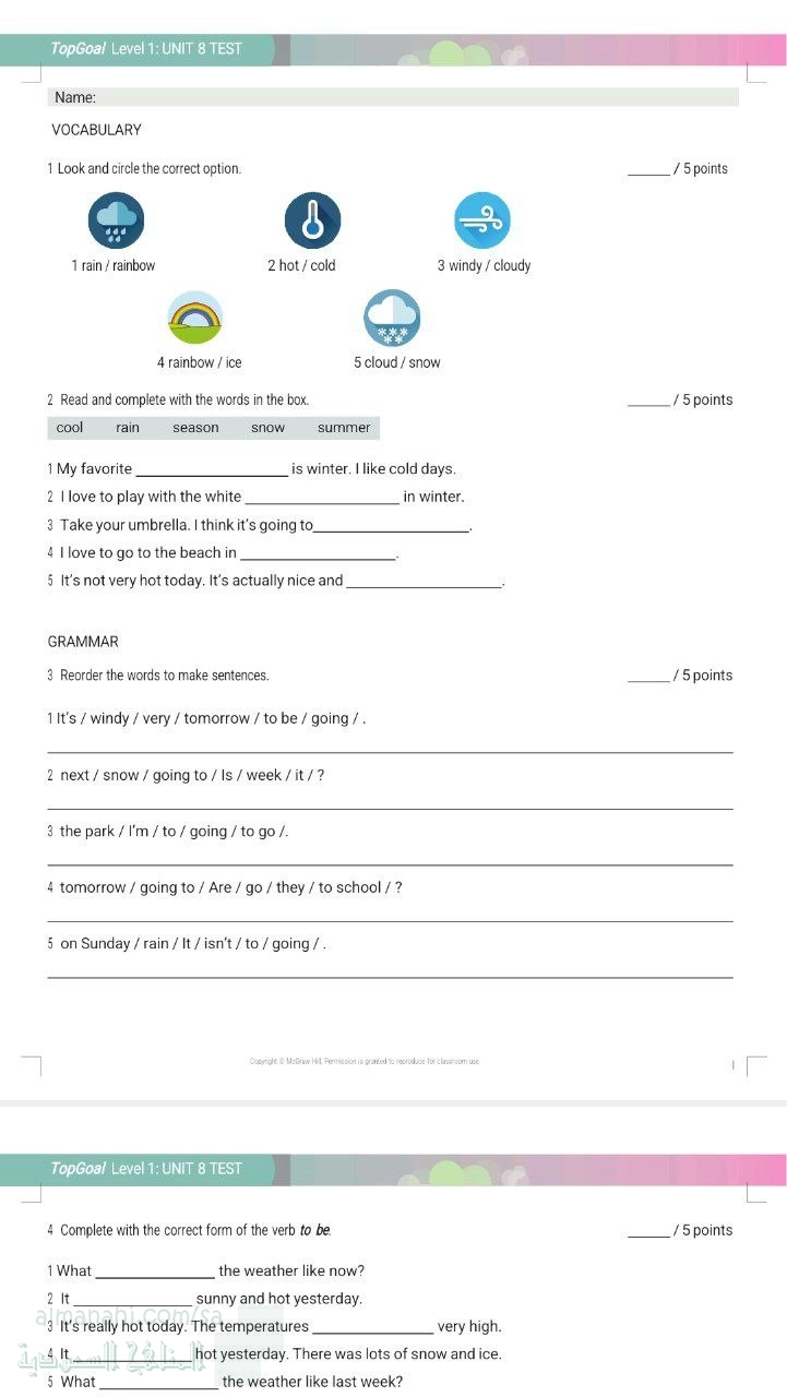 15. الصف الخامس, لغة انجليزية, جميع المفردات مع الصور لمنهج TG2
