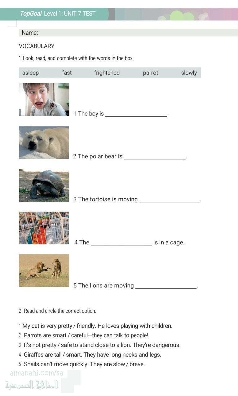1. لغة انجليزية, الفصل الثاني, 1447_1448 هجري, مراجعة الوحدة السابعة الحيوانات والصفات المقارنة غير محلول
