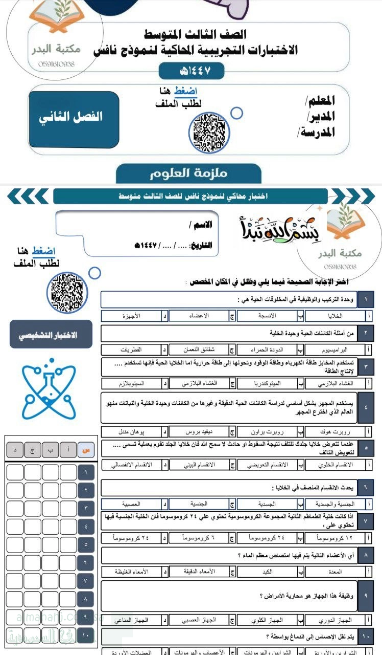 ملزمة اختبارات نافس التجريبية غير محلولة1447ه‍, الصف الثالث المتوسط, علوم, الفصل الثاني, 1447_1448 هجري - المناهج السعودية