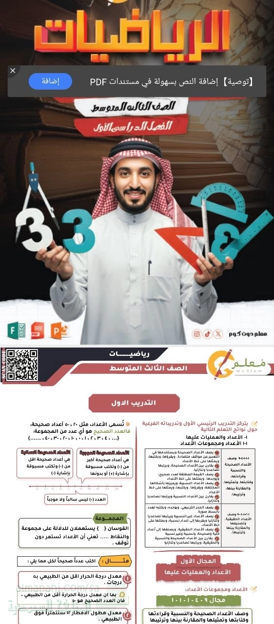 10. الصف الثالث المتوسط, رياضيات, ملف شفرة نافس تدريبات مكثفة على نواتج التعلم