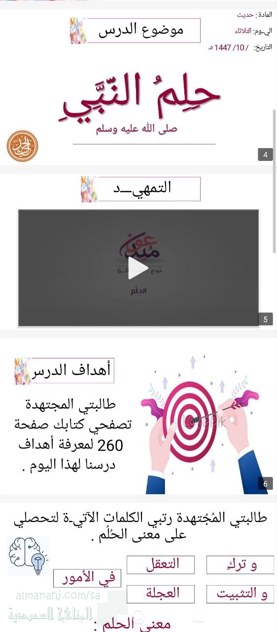 رابط تحميل وعرض ( بوربوينت الدرس التاسع حلم النبي صلى الله عليه وسلم 1447ه‍ )