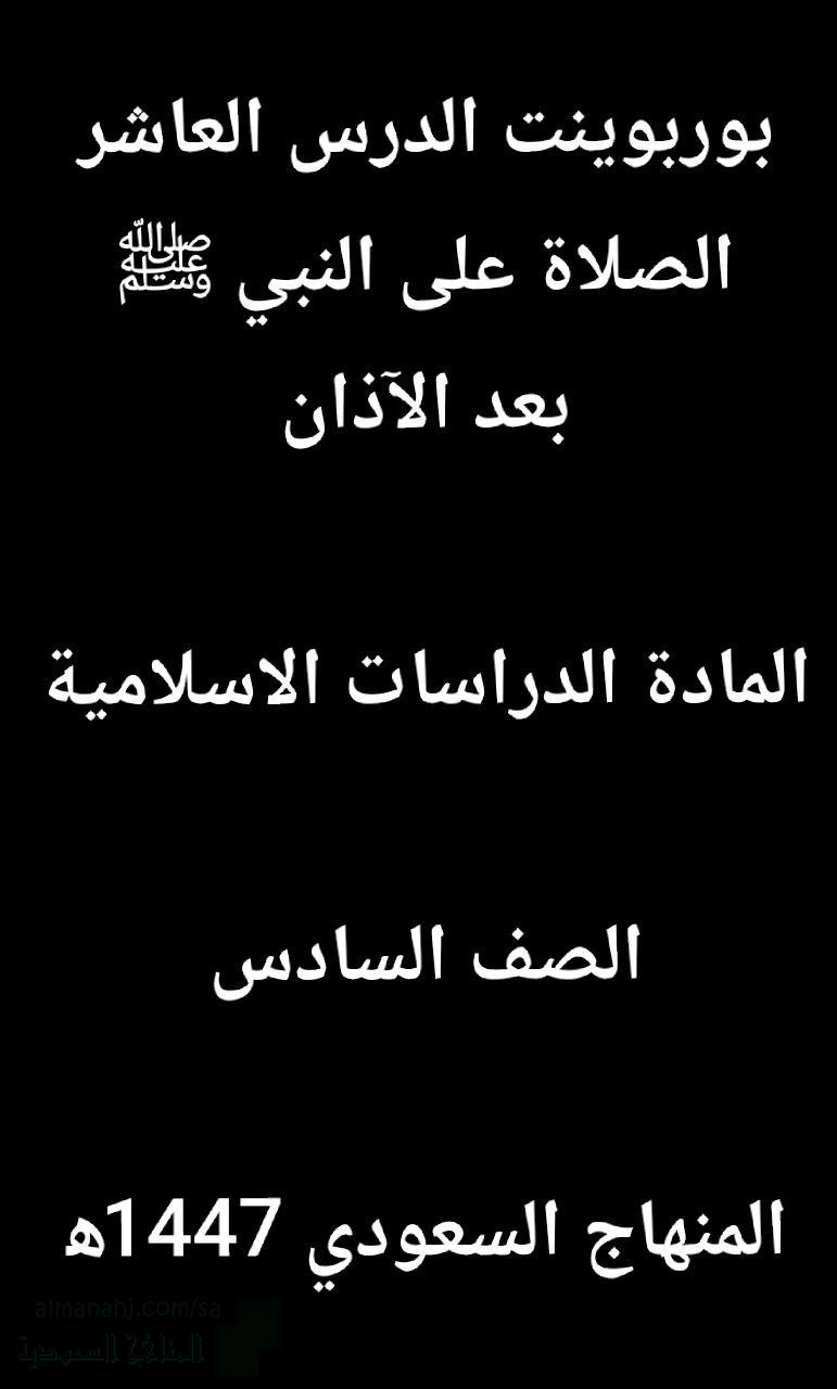 اضغط هنا لتحميل وعرض ( بوربوينت الدرس العاشر الصلاة على النبي ﷺ بعد الآذان 1447ه‍ )