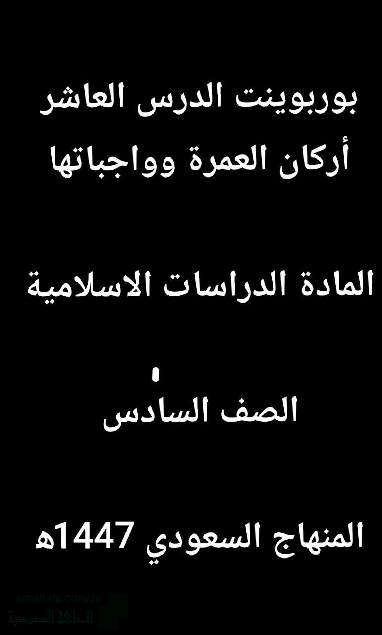 13. الصف السادس, دراسات اسلامية, بوربوينت الدرس العاشر أركان العمرة وواجباتها 1447ه