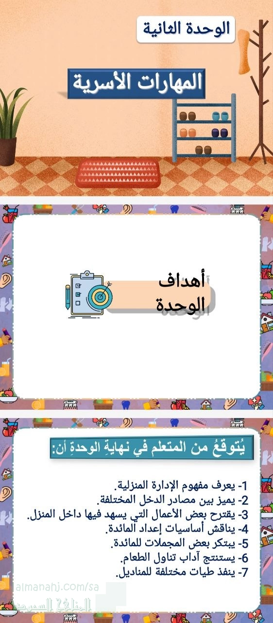 6. الصف الأول المتوسط, تربية أسرية, تربية أسرية الإدارة المنزلية والمساهمة في أعمال المنزل