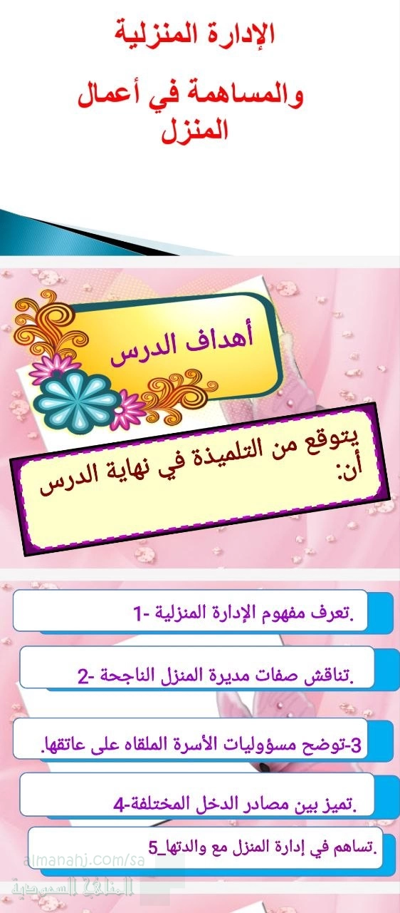 7. الصف الأول المتوسط, تربية أسرية, تربية أسرية عرض بوربوينت الإدارة المنزلية إدارة شؤون الأسرة