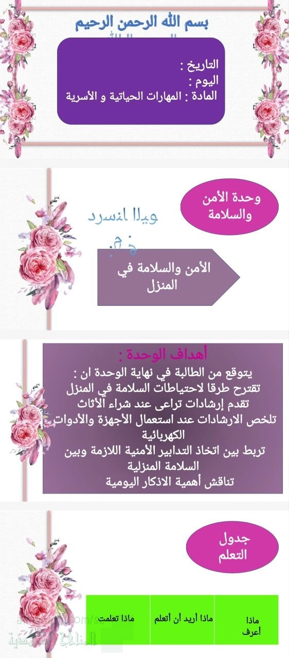 1. الصف الأول المتوسط, تربية أسرية, تربية أسرية عرض بوربوينت درس الأمن والسلامة في المنزل