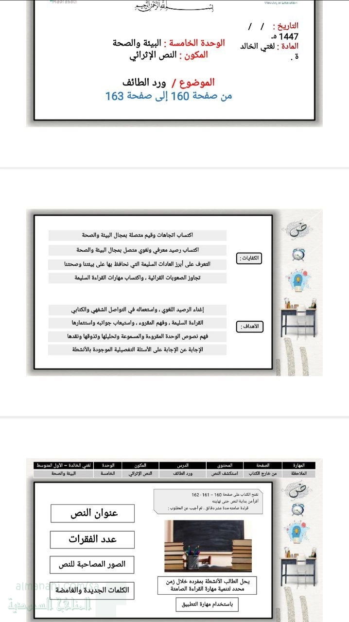 الوحدة الخامسة البيئة والصحة النص الإثرائي ورد الطائف من ص160 إلى 163 بحسب الصف الأول المتوسط في مادة اللغة العربية – الفصل الثاني