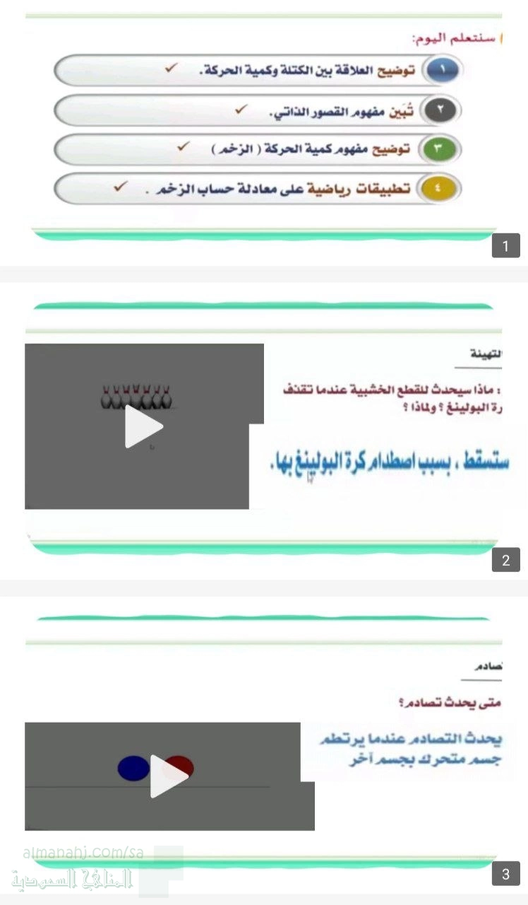 يحتوي هذا الملف على الزخم العلاقة بين الكتلة وكمية الحركة والقصور الذاتي، وهو في مادة العلوم للصف الثالث المتوسط وفق المنهاج السعودي.