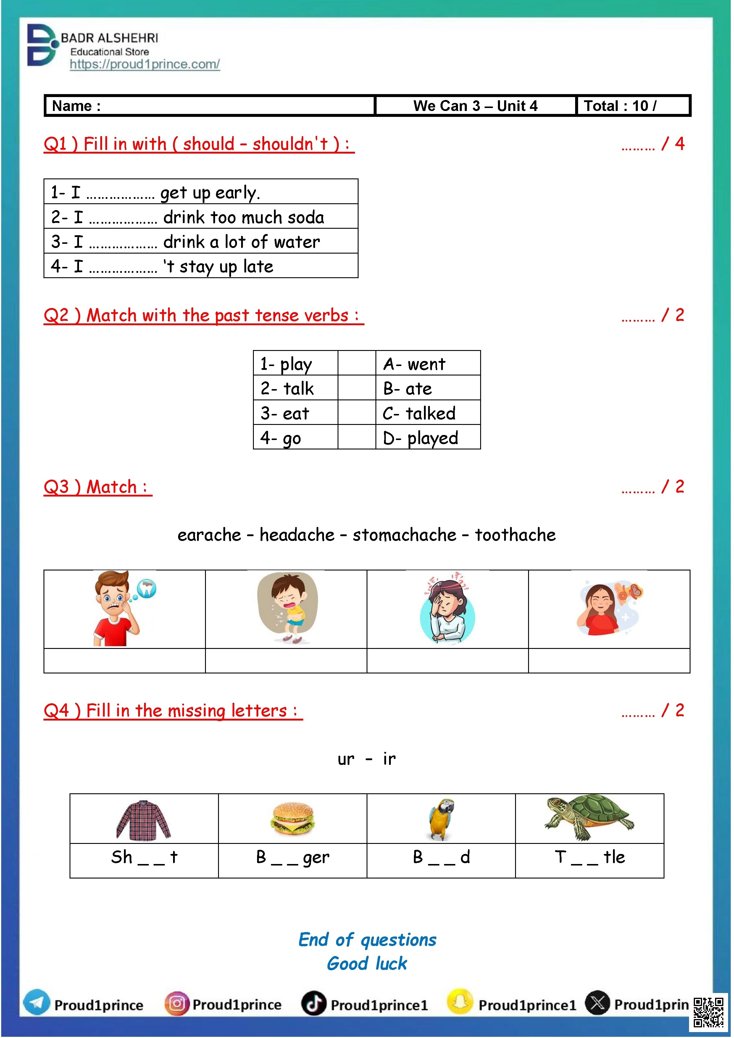 ورقة عمل تفاعلية للوحدة الثانية Life is Ups and Downs