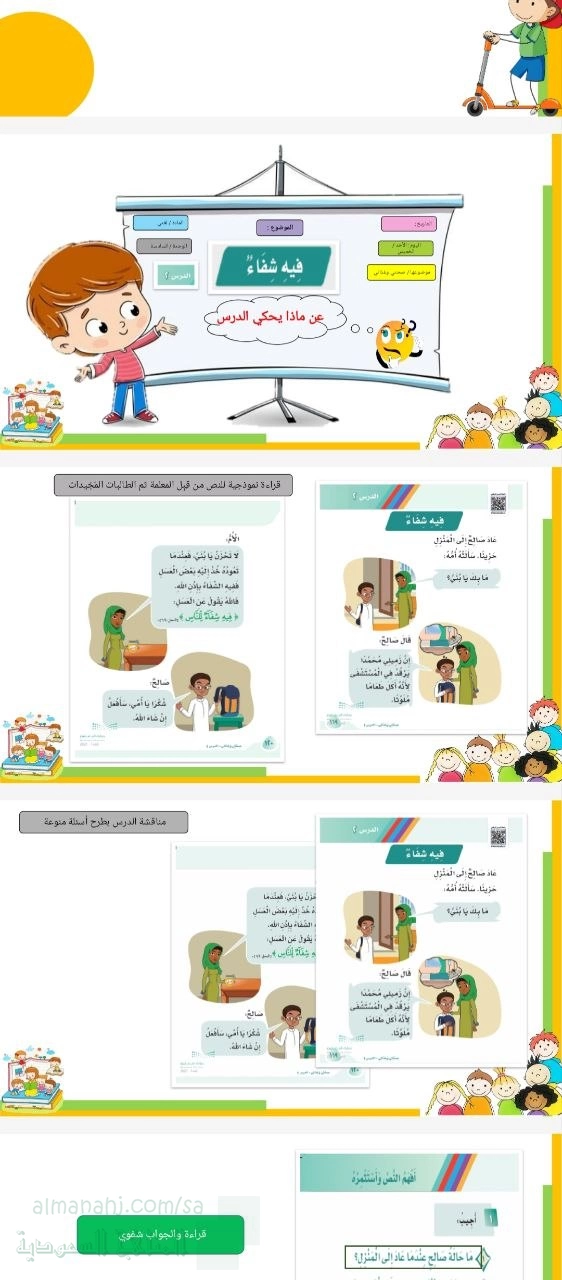 بوربوينت درس فيه شفاء ملف2 بحسب الصف الأول في مادة اللغة العربية – الفصل الثاني