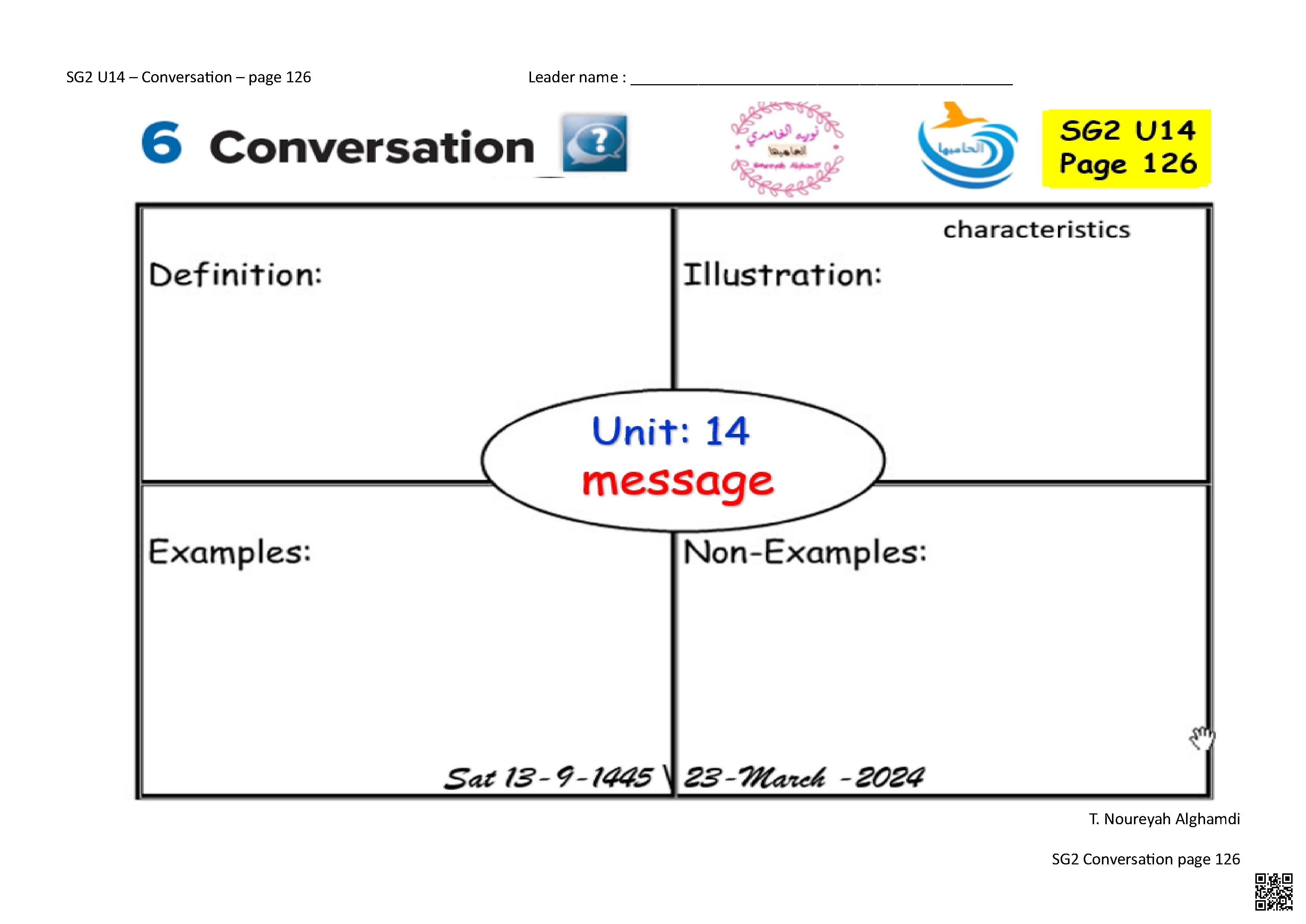 الدرس الرابع الوحدة14 ورقة عمل خريطة المشاعر لمحادثة