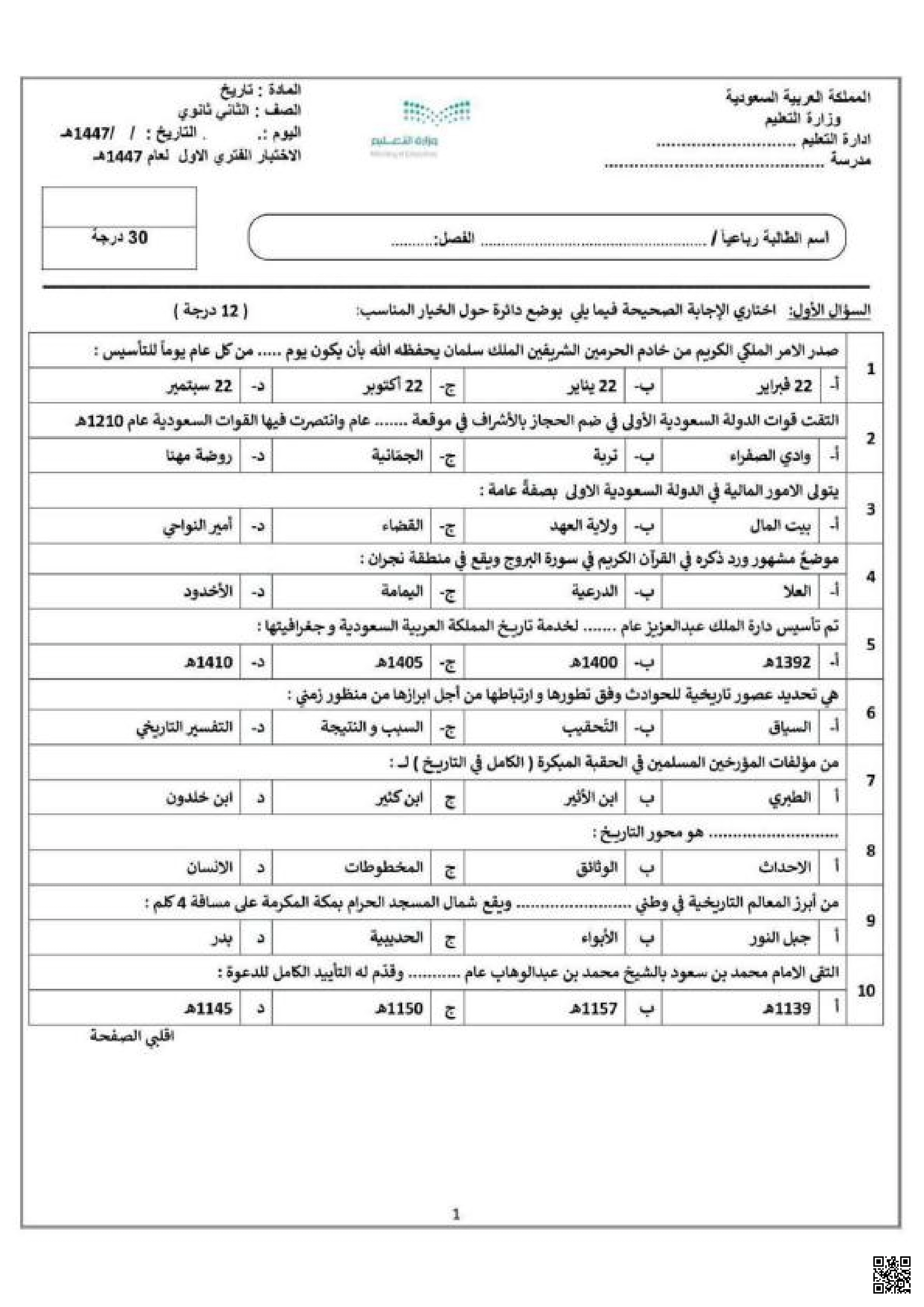 الصف الثاني الثانوي