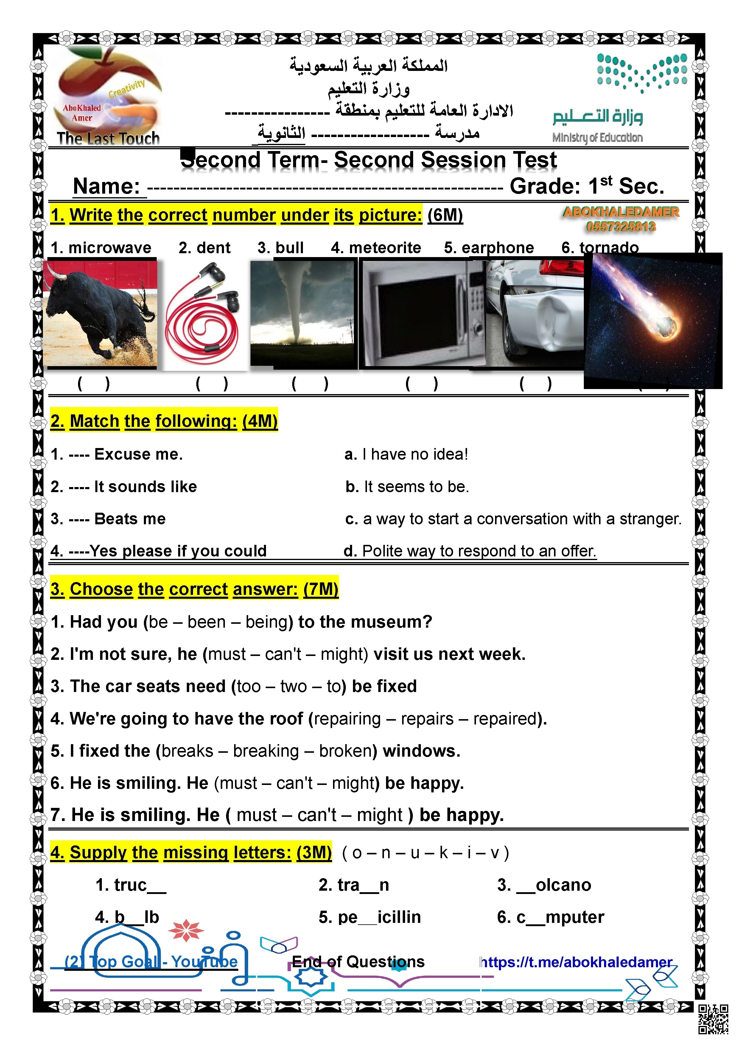 اختبار الفترة الأولى شامل لغة 1447ه مع نموذج الإجابة