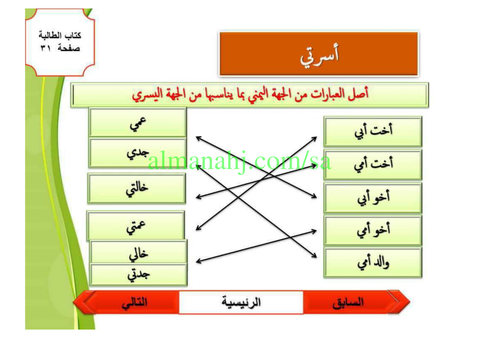 أنت هنا: موقع المناهجالمناهج السعودية الصف الأول تربية أسرية الفصل الثاني حلول