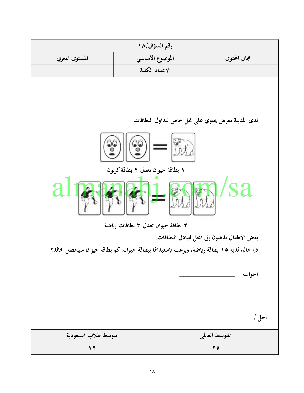 12. رياضيات, الفصل الأول, 1447_1448, نموذج الإجابة على اختبار فصل الجمع و الطرح