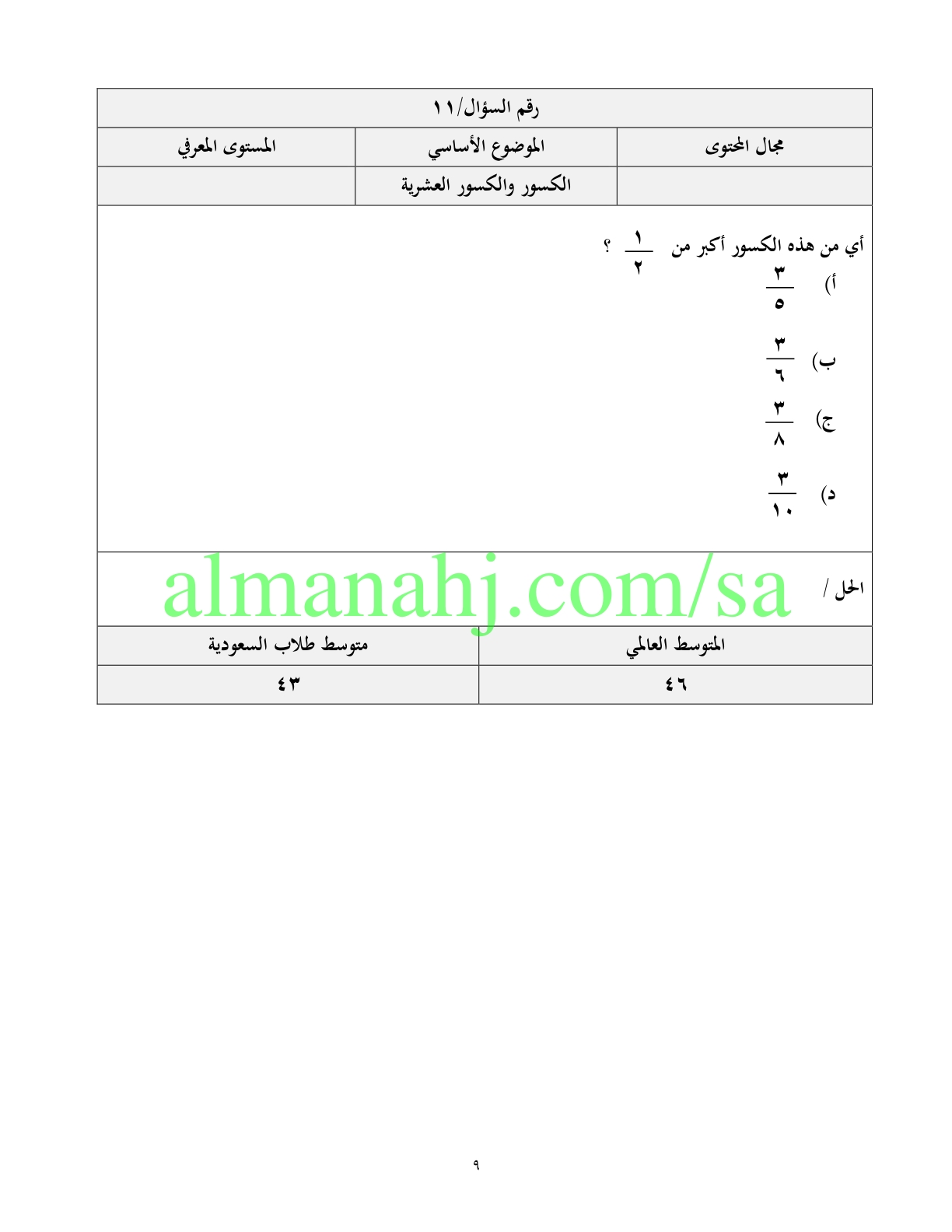 1. نموذج الإجابة على الاختبار النهائي في حائل