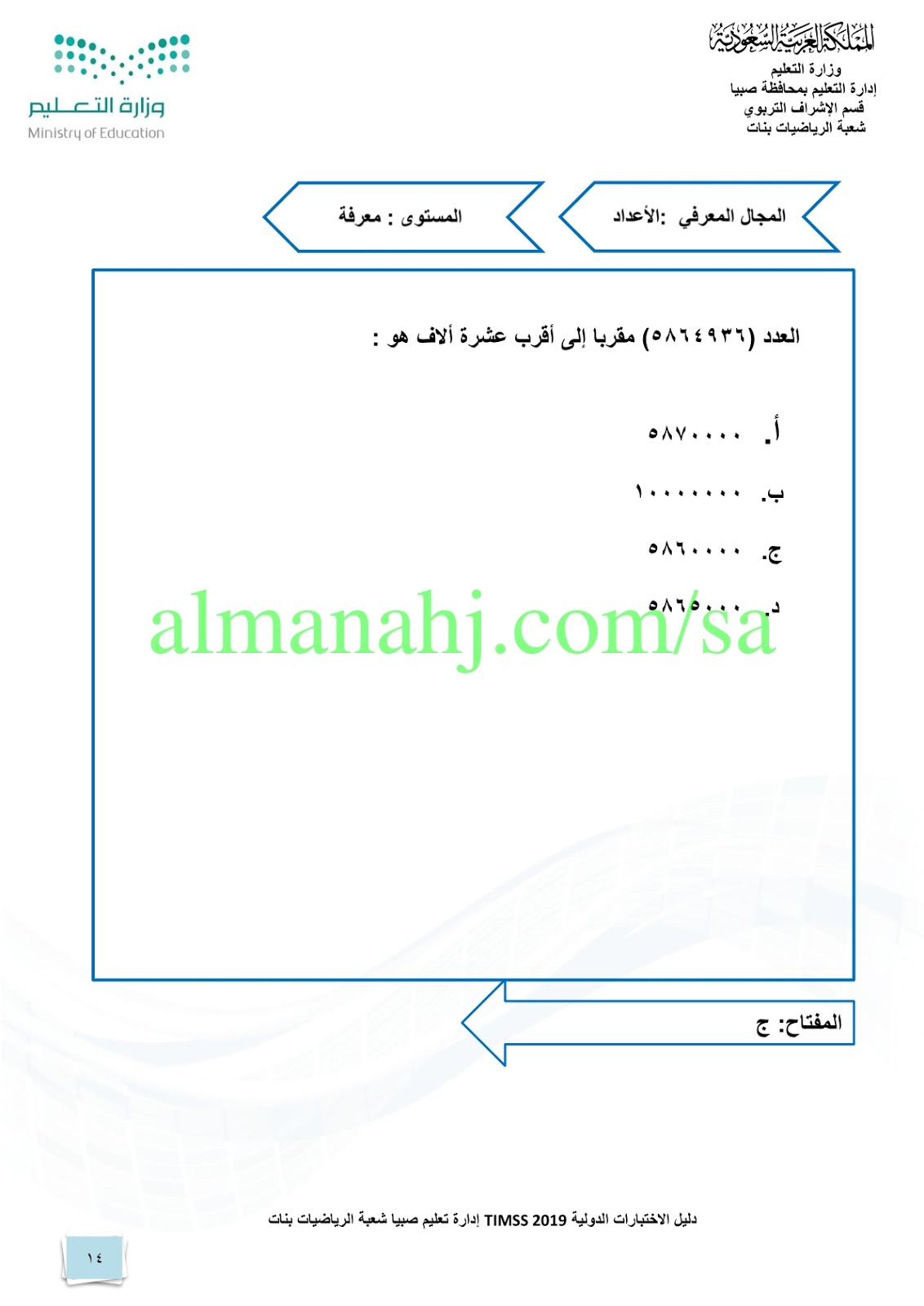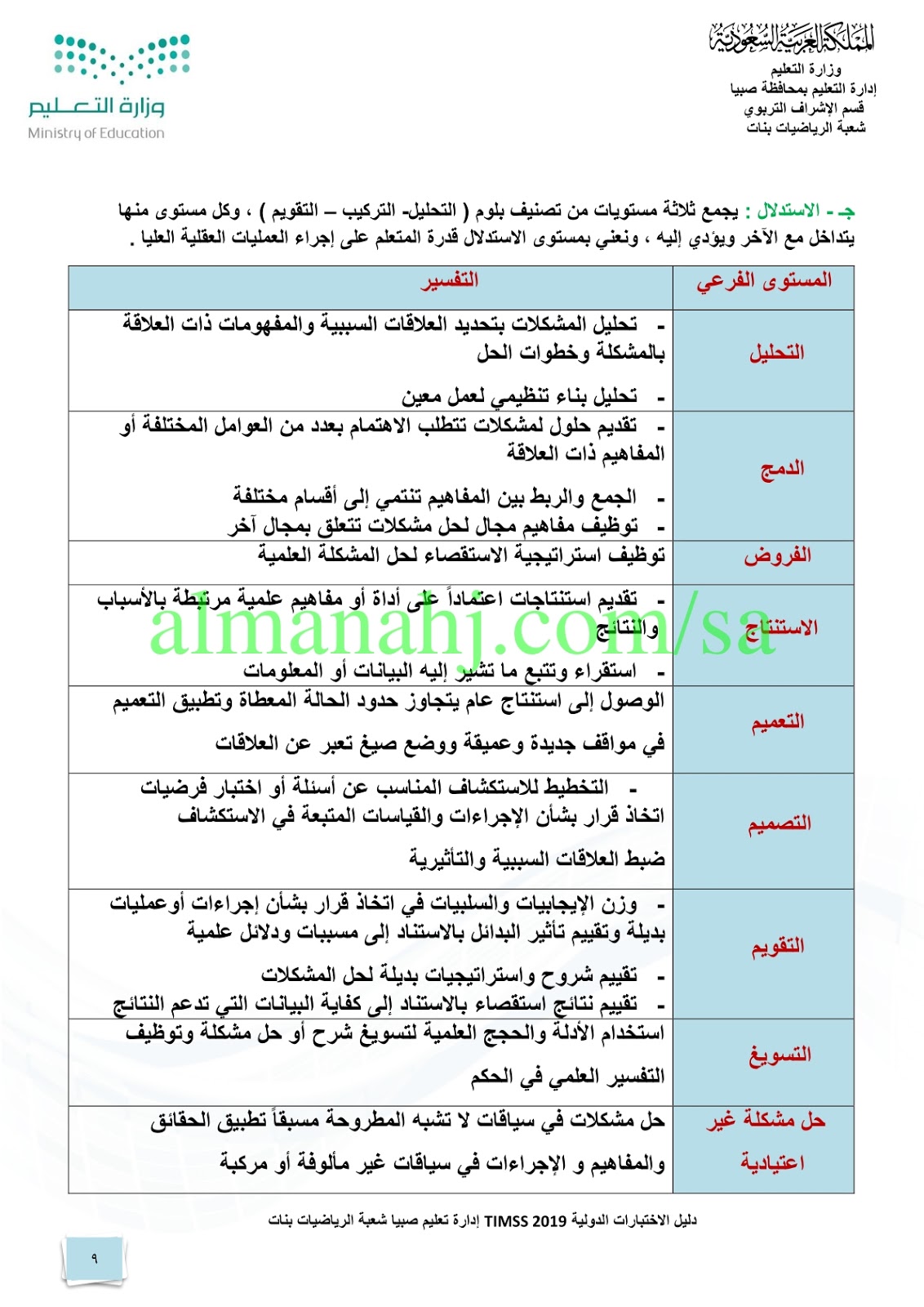 إليكم رابط ملف دليل اختبارات TIMSS لمادة الرياضيات /الصف الرابع الابتدائي