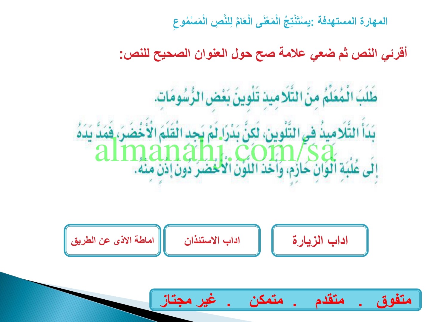 7. نص الاستماع للوحدة الخامسة آداب وسلوك التيمن