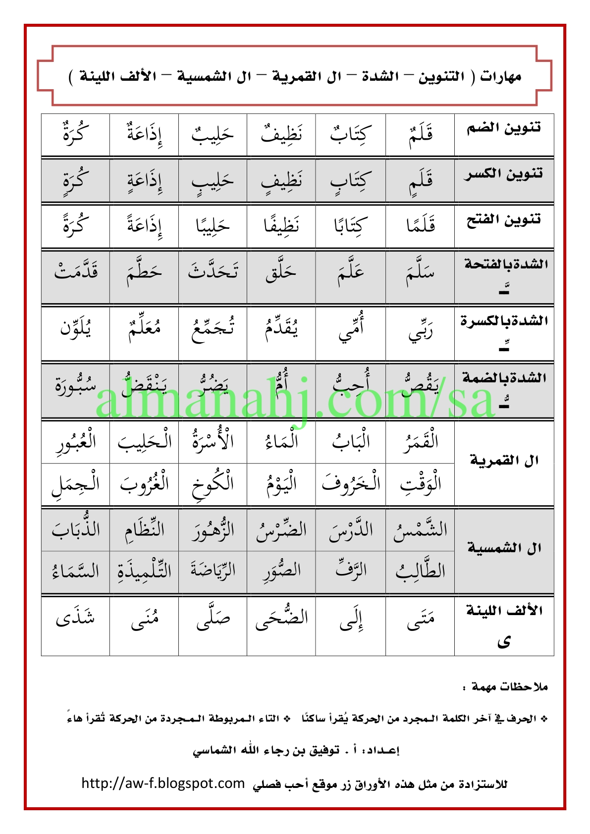 إليكم رابط لملف يحوي مهارات التنوين والشدة واللام القمرية واللام الشمسيه والالف اللبنة