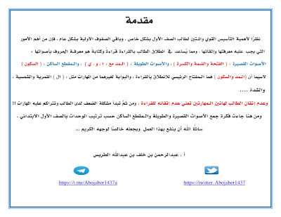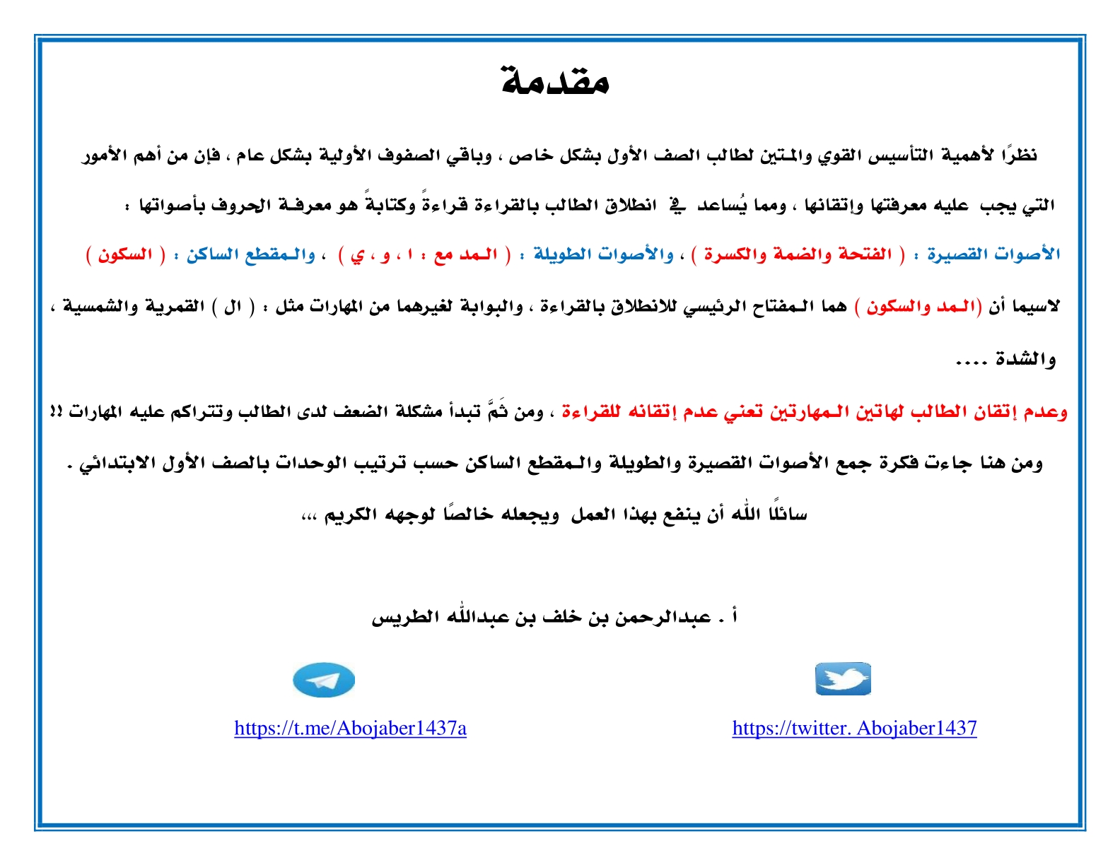 الحروف بأصواتها القصيرة والطويلة و المقاطع الساكنة - إعداد: أ . عبدالرحمن بن خلف الطريس | ||