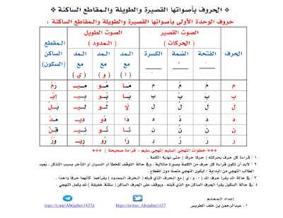 الحروف بأصواتها القصيرة والطويلة و المقاطع الساكنة - إعداد: أ . عبدالرحمن بن خلف الطريس