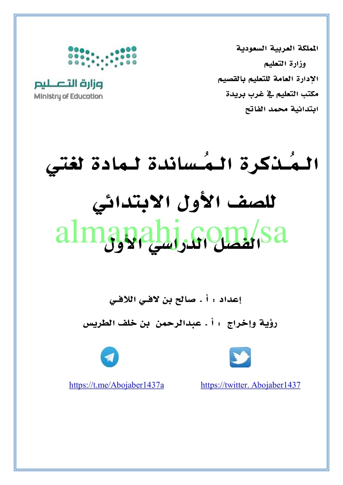 أنت هنا: موقع المناهجالمناهج السعودية الصف الأول لغة عربية الفصل الثاني مذكرات وبنوك