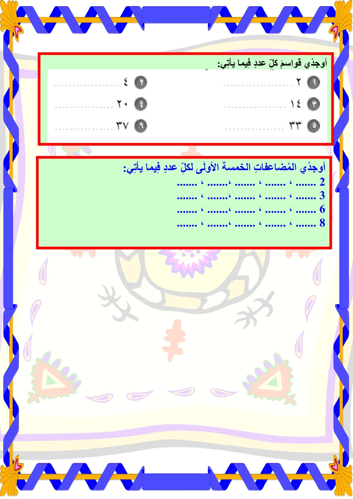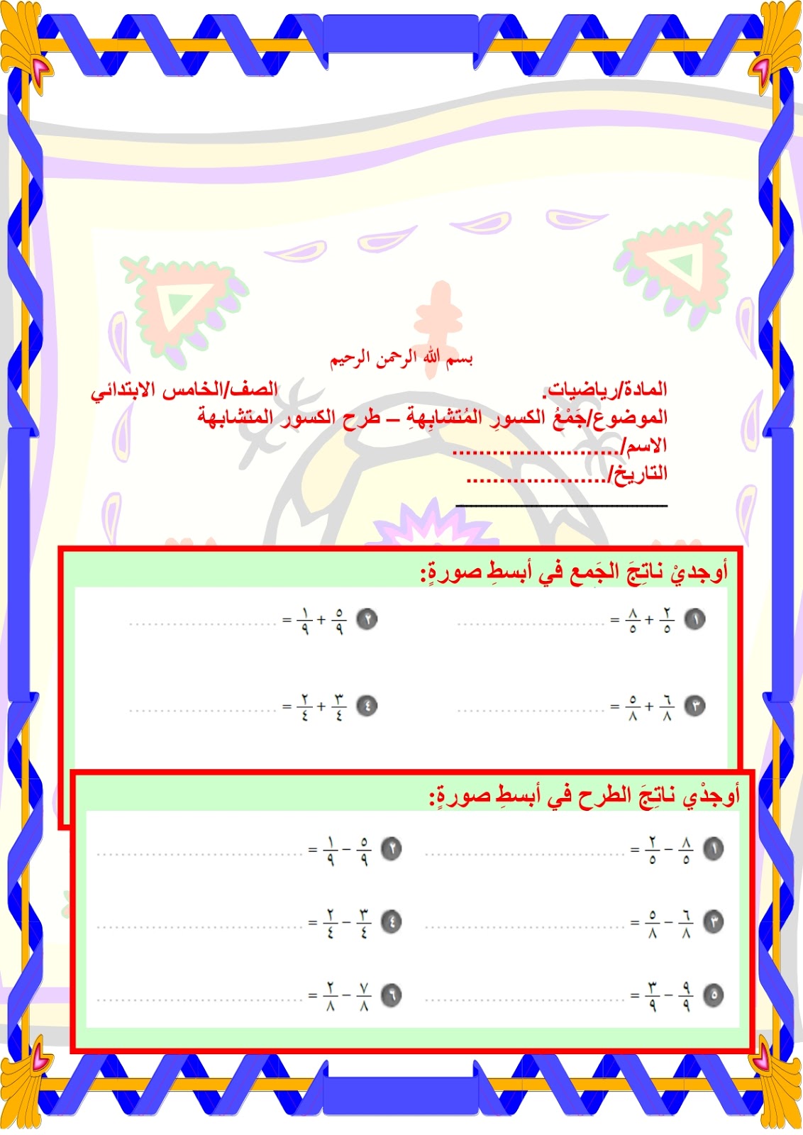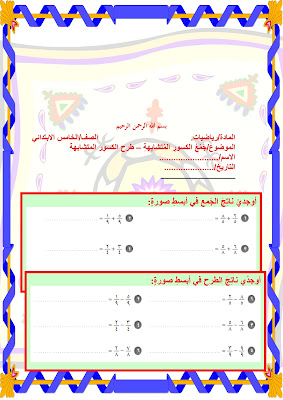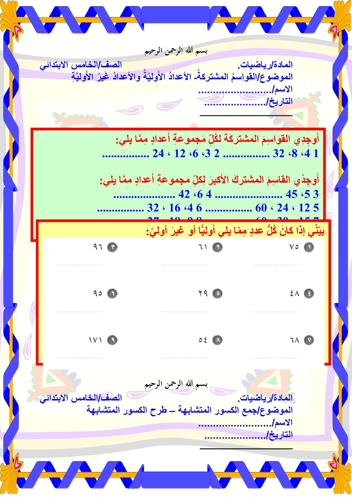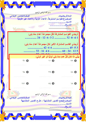 إليكم رابط ملف لاوراق عمل رياضيات للصف الخامس الابتدائي