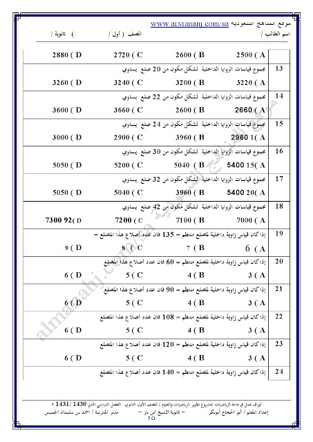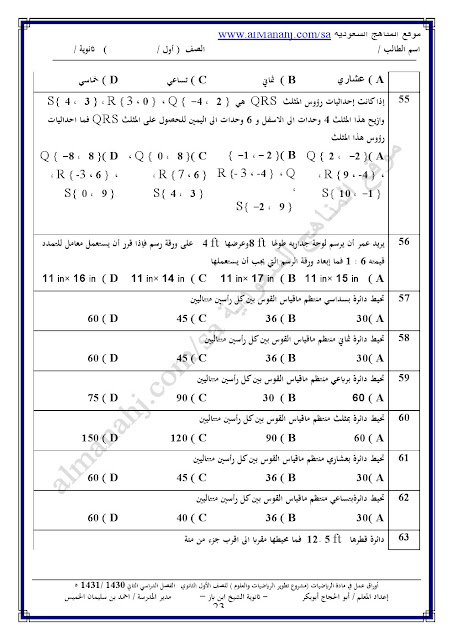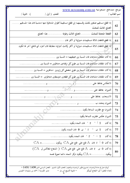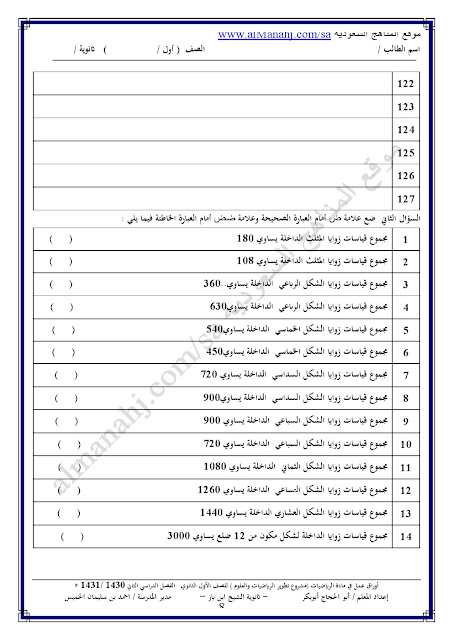 معلومات الملف: أوراق عمل شاملة للفصل الصف الأول الثانوي في مادة الرياضيات وذلك وفق المنهاج السعودي | ||