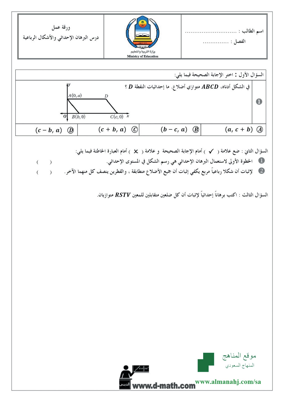 14. الصف الثالث المتوسط, رياضيات, الاختبار النهائي نموذج 5 تصحيح آلي