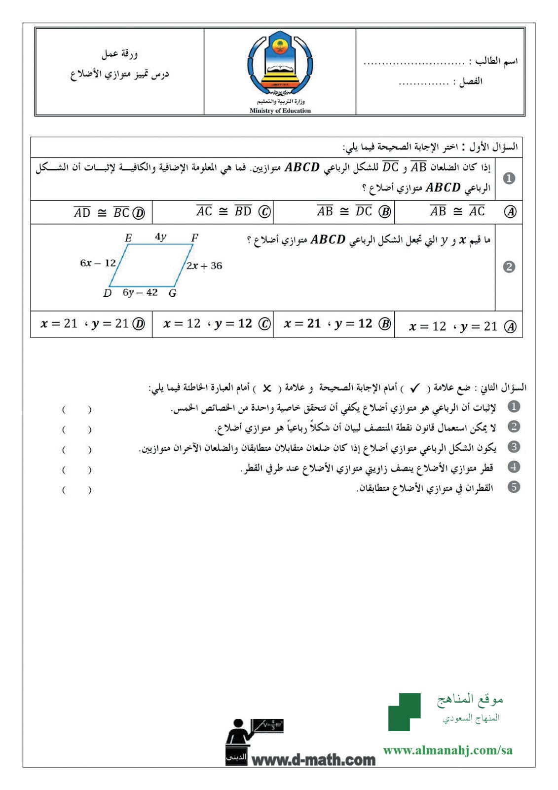 5. الصف الخامس, رياضيات, نموذج اختبار نهاية الفصل الدراسي الأول للعام ١٤٤٧ هجري