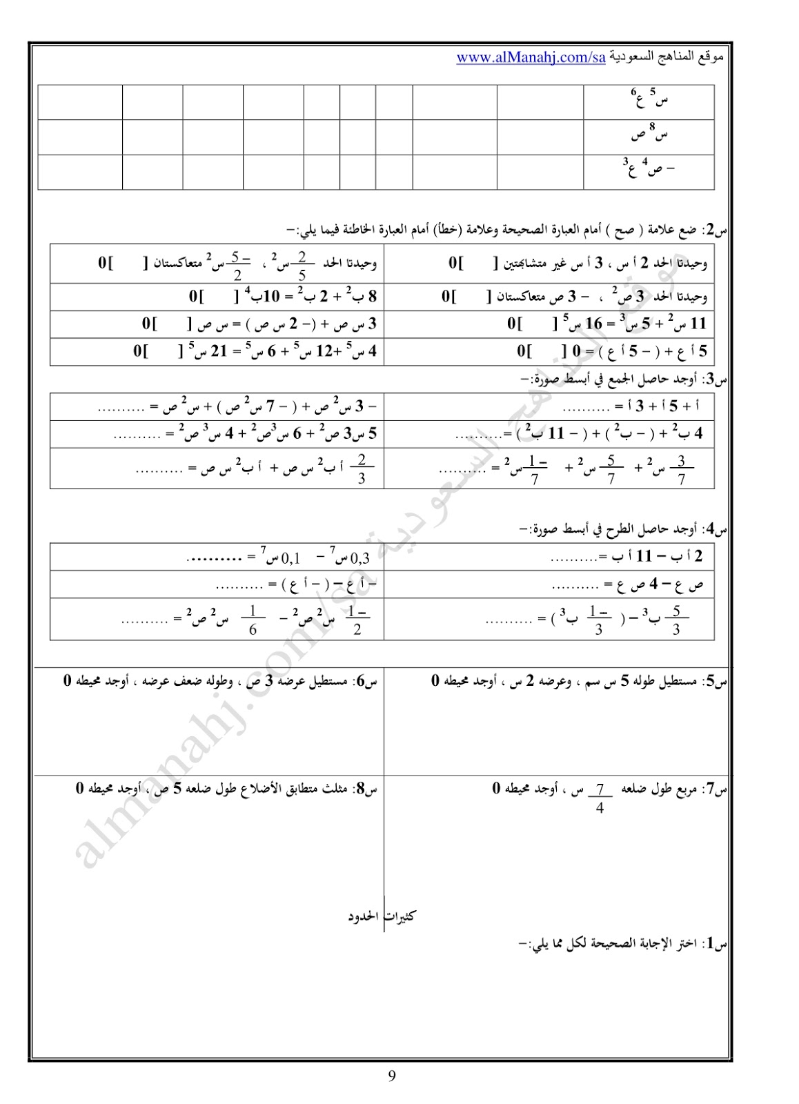 معلومات الملف: ملف رائع يتضمن اسئلة متنوعة و اختبارات شاملة لمادة الرياضيات للصف الثاني المتوسط وفق المنهج السعودي في 31 صفحة | ||