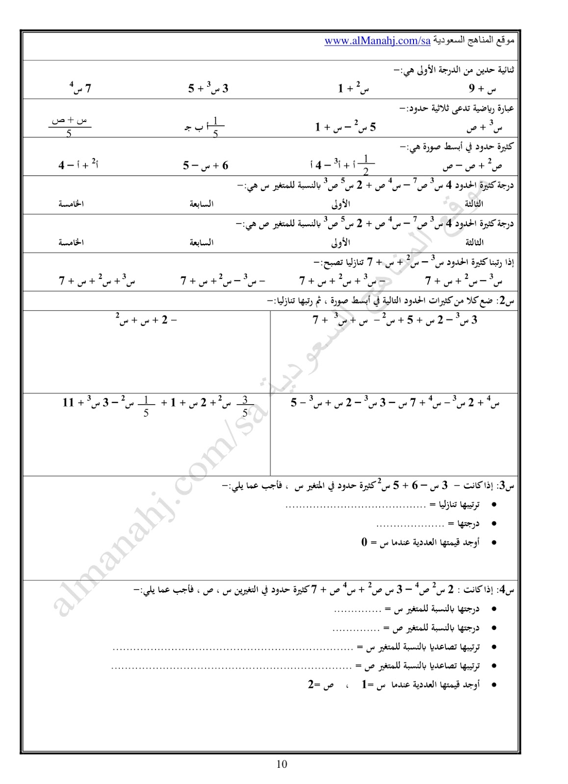 ملف رائع يتضمن اسئلة متنوعة و اختبارات شاملة لمادة الرياضيات للصف الثاني المتوسط وفق المنهج السعودي في 31 صفحة