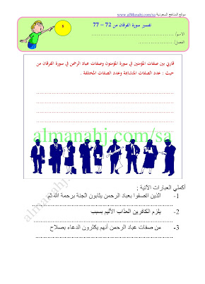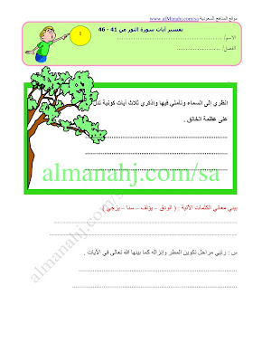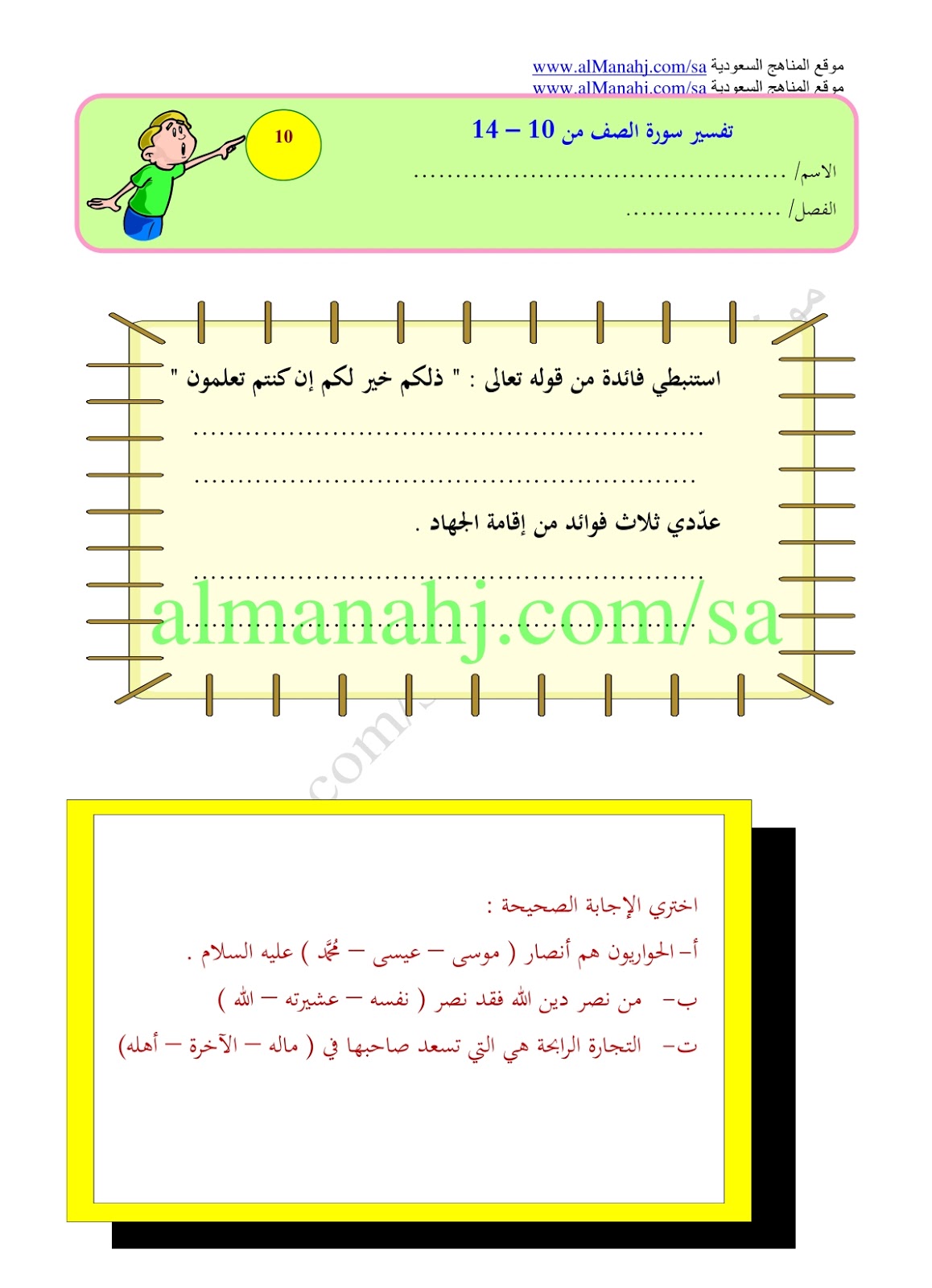 معلومات الملف: إليكم أوراق عمل لكامل منهج التفسير للصف الثاني متوسط وفق المنهج السعودي | ||