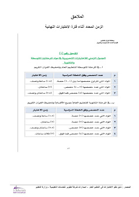 10. خطة الإختبارات للتعليم عن بعد لمراحل التعليم العام