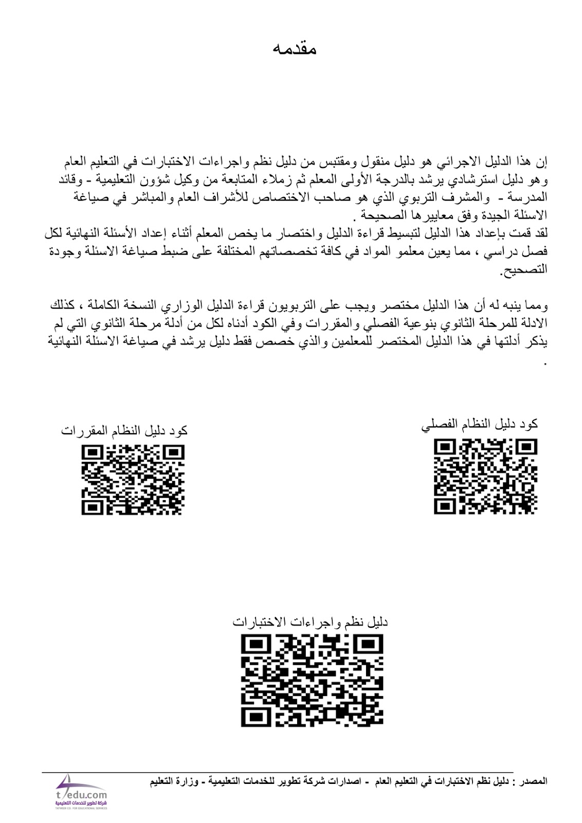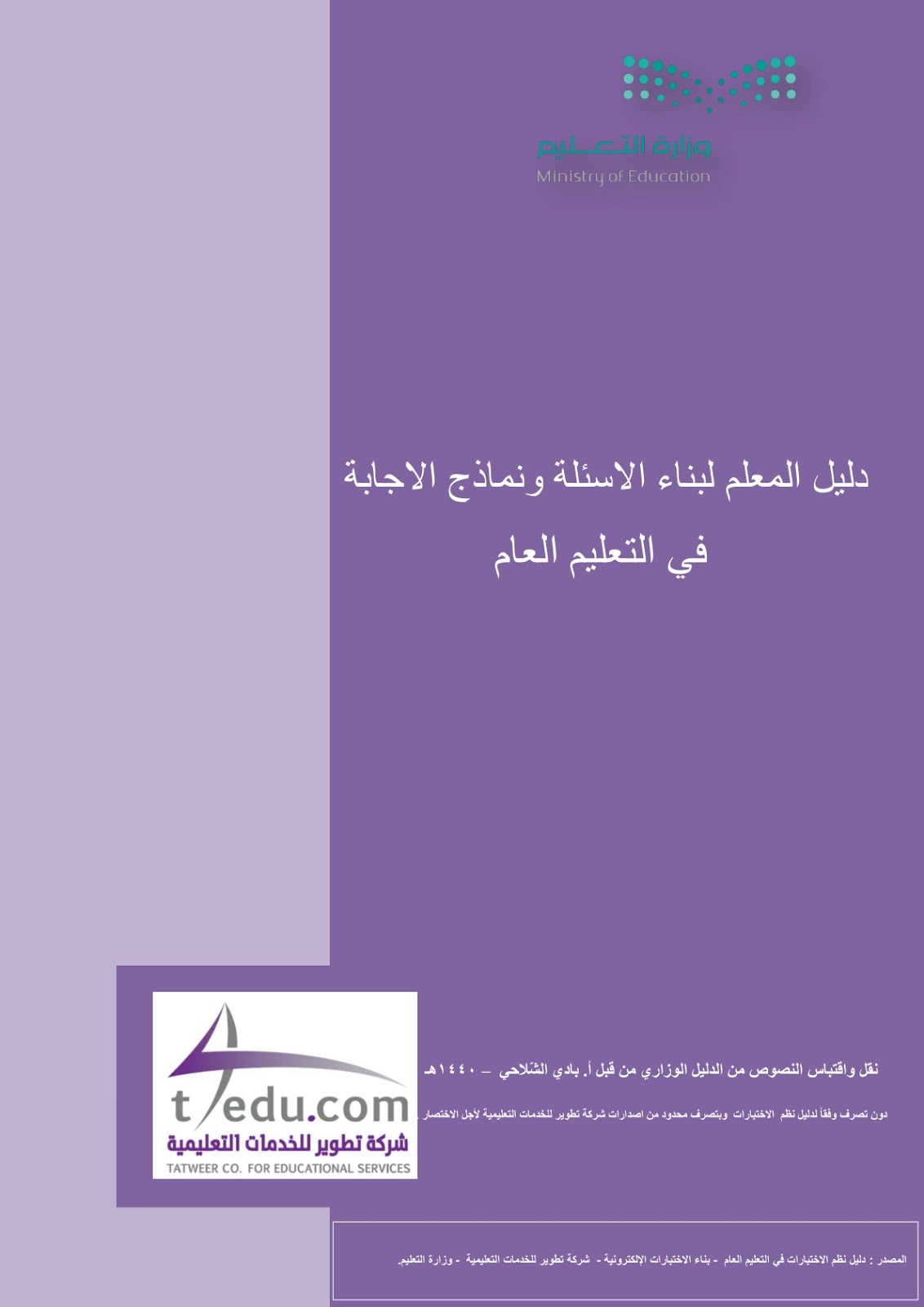 ملف يتضمن دليل المعلم لبناء الأسئلة ونماذج الإجابة في التعليم العام وفق المنهاج السعودي