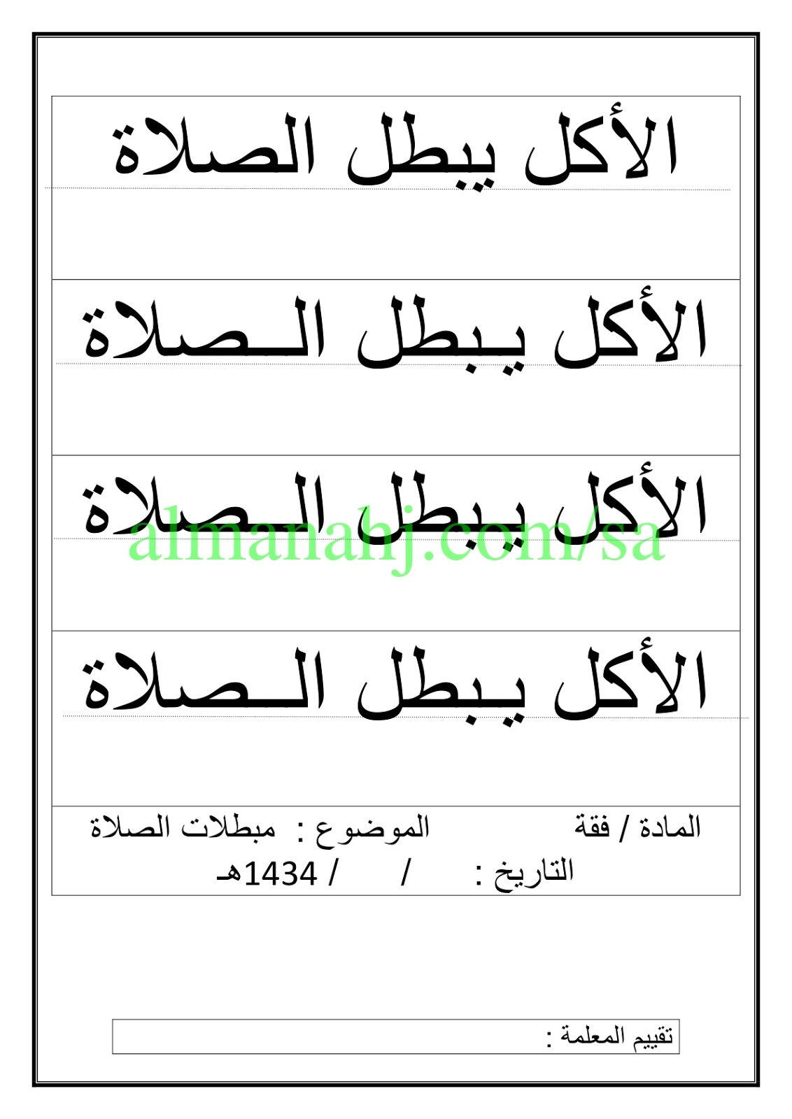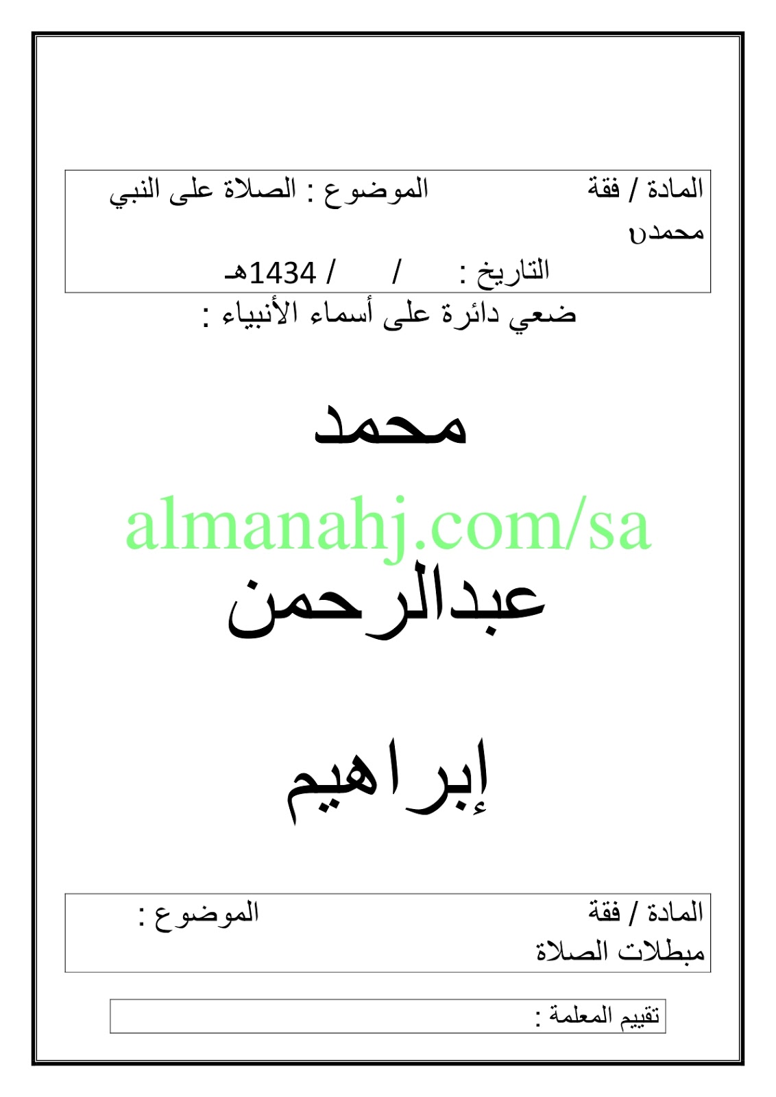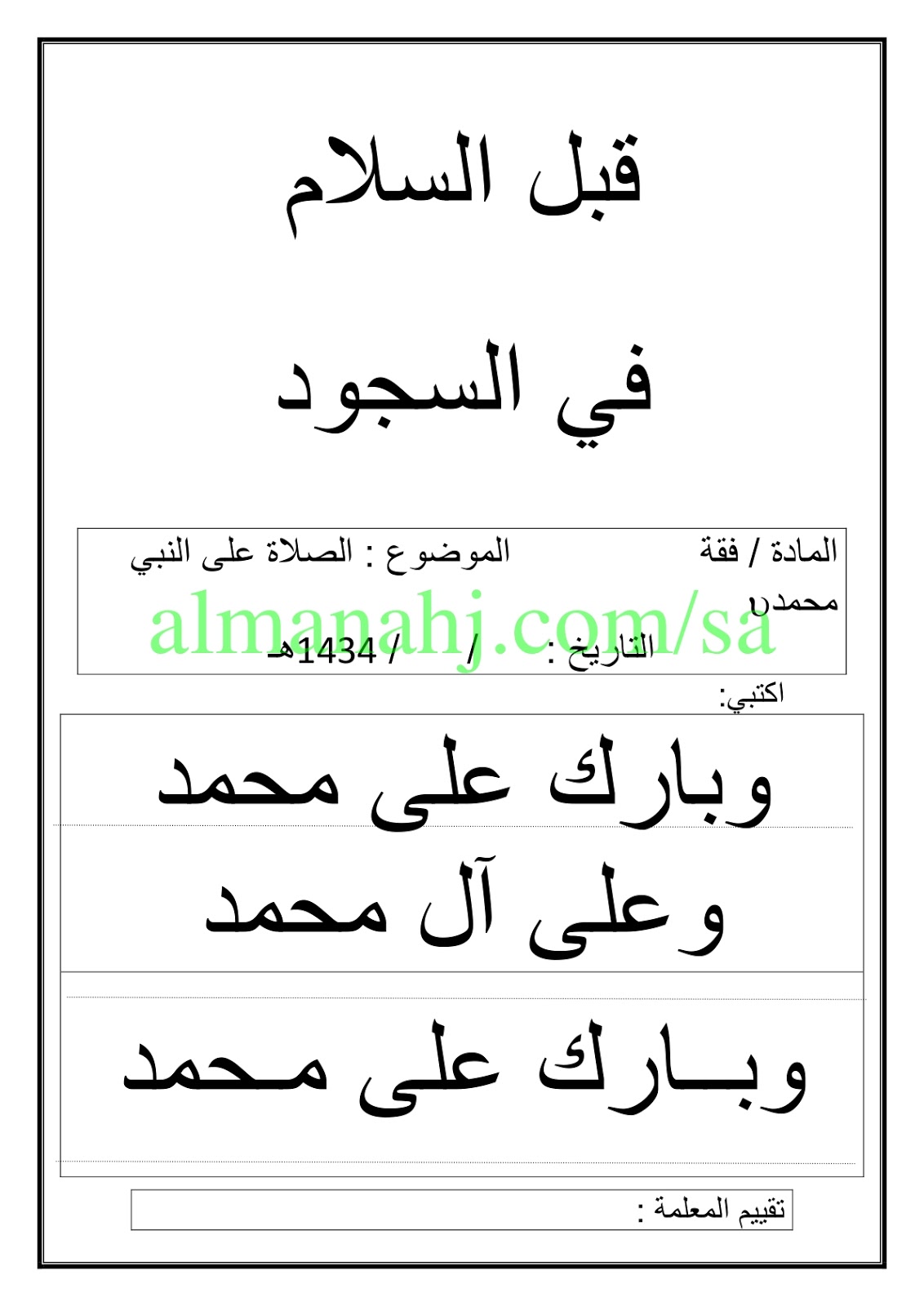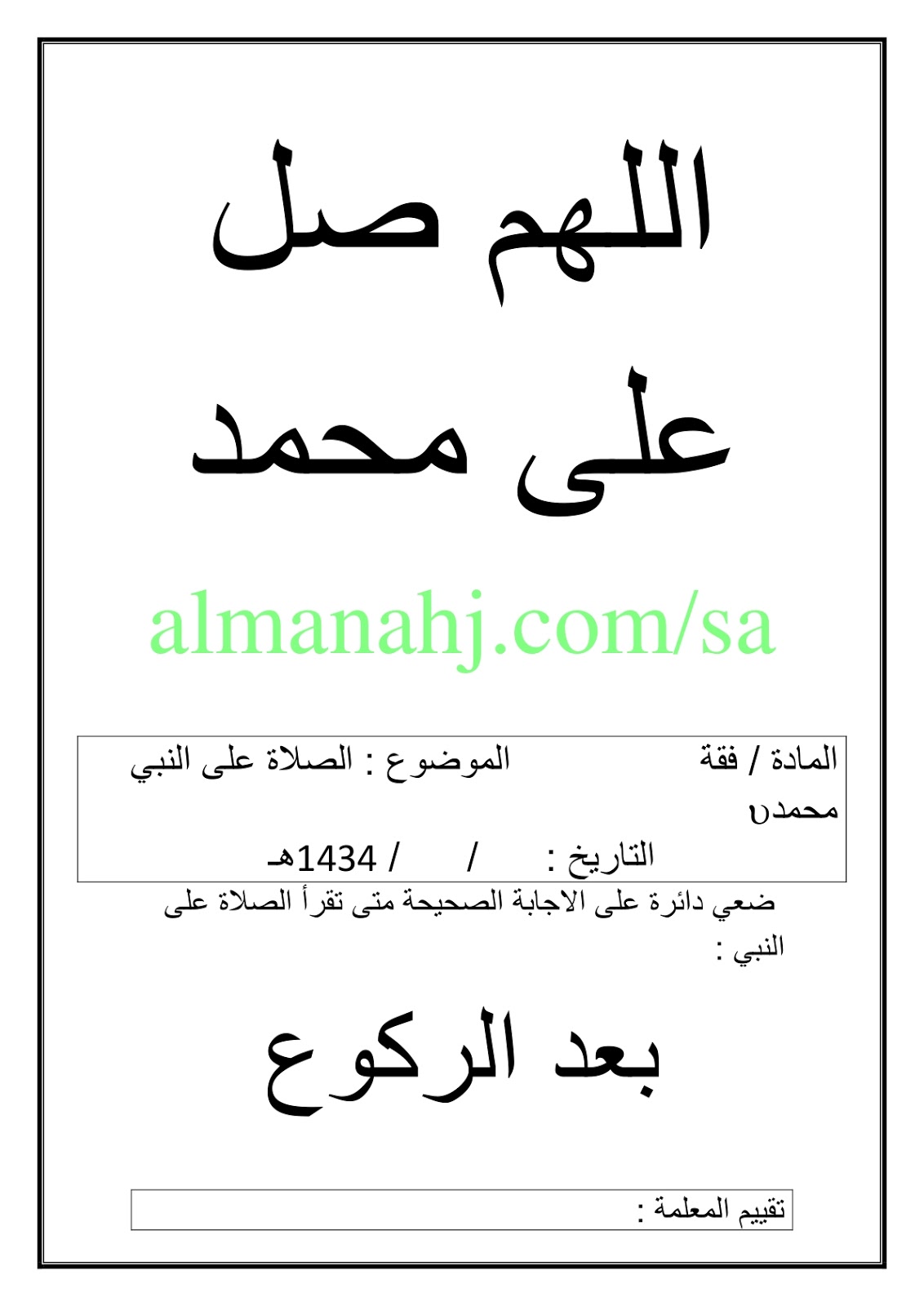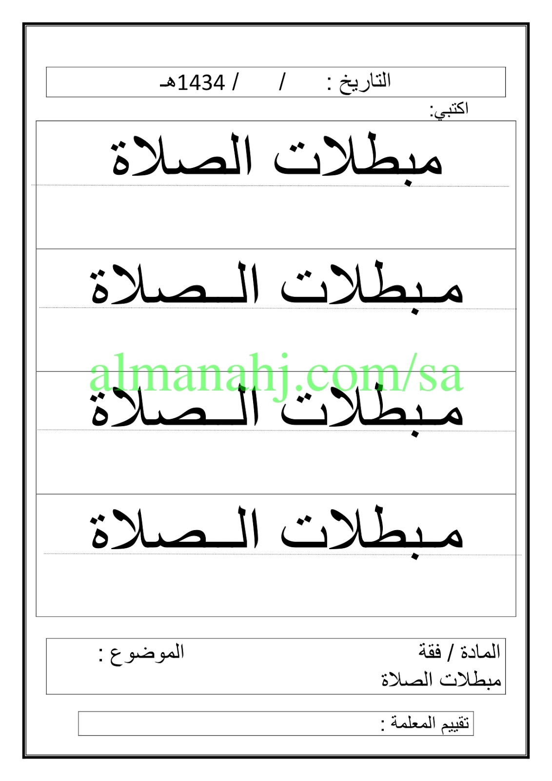 معلومات الملف: ملف يتضمن أوراق عمل في مادة الفقه للصف الثالث الابتدائي في عدة دروس مثل الصلاة على النبي محمد ومبطلات الصلاة | ||