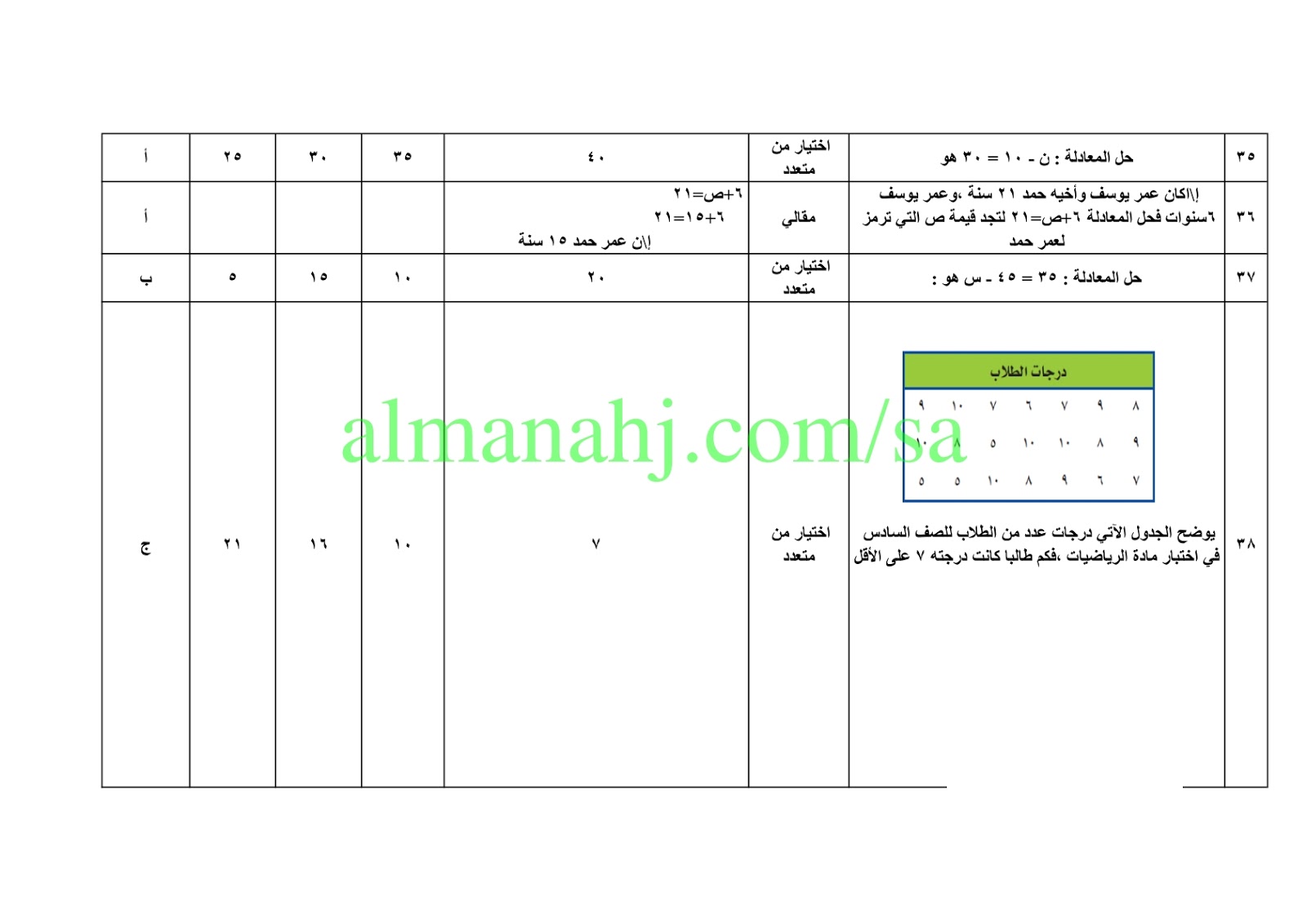 13. رياضيات, الفصل الأول, 1447ه‍, حل ورقة العمل للأسبوع السادس نموذج بورقة واحدة
