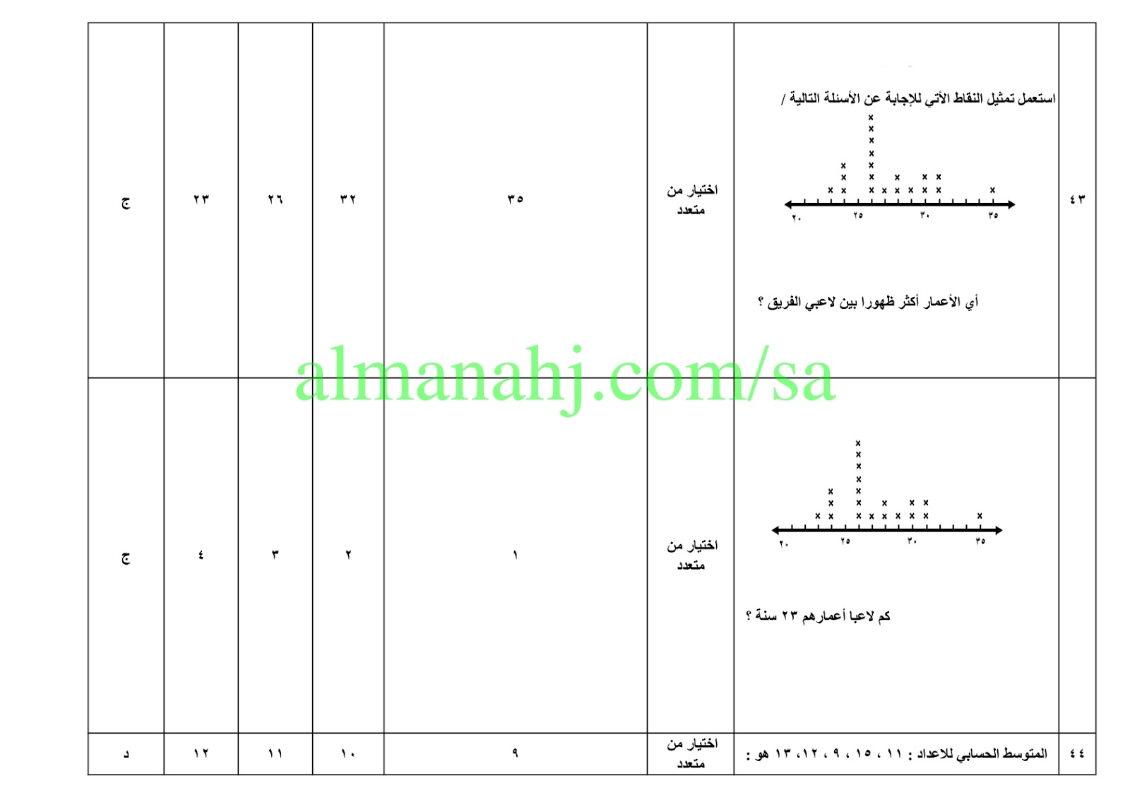 2. نموذج إجابة اختبار فصل الإحصاء والتمثيلات البيانية