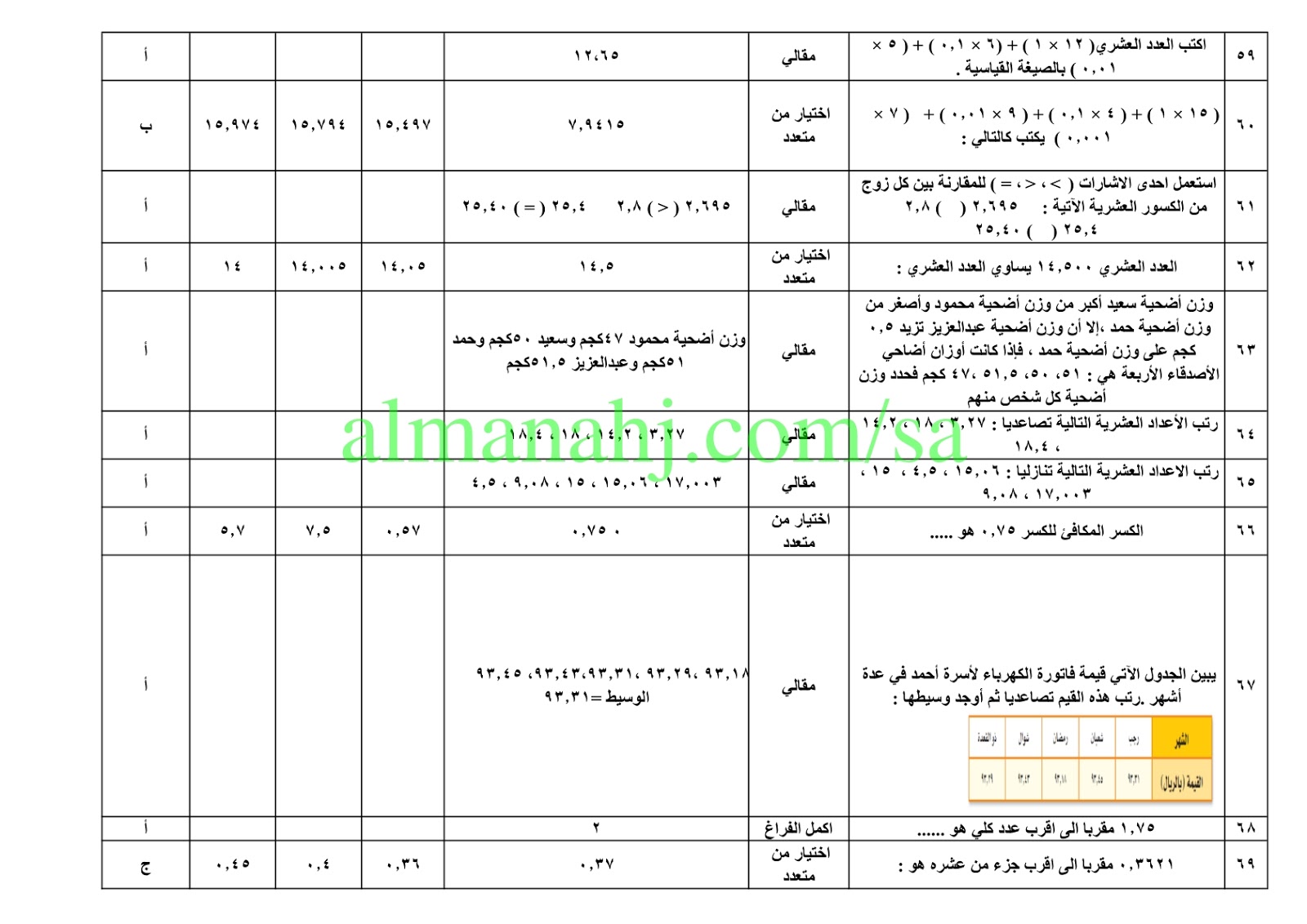 6, الصف السادس, الاختبارات, نموذج الإجابة على مسابقة ماهرون الاختبار المحاكي للاختبارات الوطنية نافس في منطقة جازان